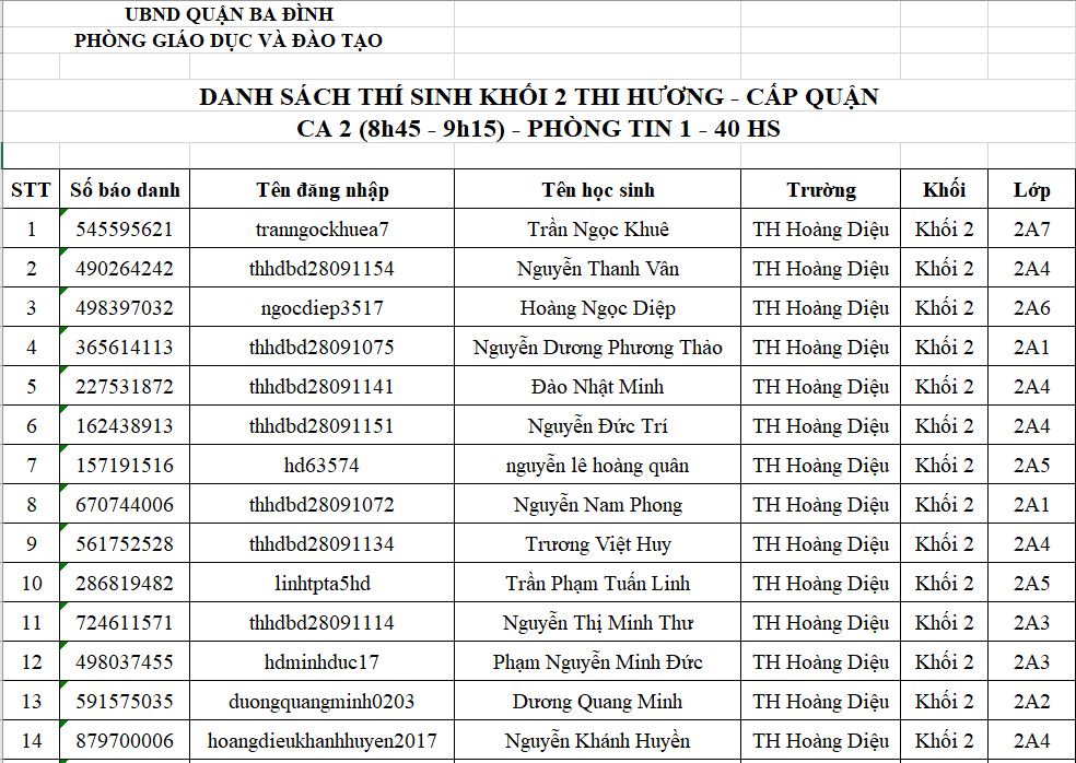 3. Địa điểm thi: Phòng Tin học trường Tiểu học Hoàng Diệu