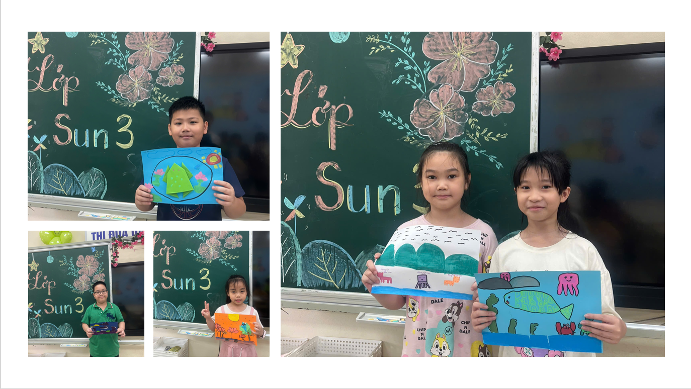 Trong hoạt động Khéo tay hay làm, học sinh SUN 3 đã khéo léo tạo nên những sản phẩm thủ công xinh xắn, từ gấp giấy, làm thiệp, đến mô hình đơn giản từ vật liệu tái chế. Không chỉ rèn luyện sự tỉ mỉ, sáng tạo, các em còn học cách trân trọng giá trị của lao động thủ công và bảo vệ môi trường.