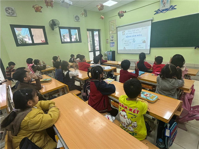 Các bạn nhỏ lớp 2a8 đã được trải nghiệm tiết học giáo dục phòng bệnh cúm mùa. Tiết học giúp các con tìm hiểu về bệnh cúm và cách phòng ngừa bệnh này.