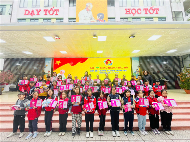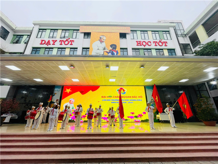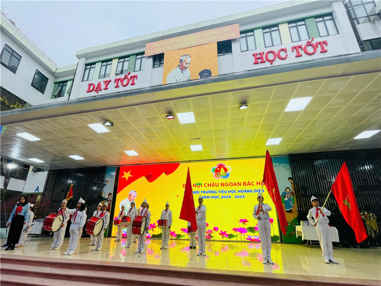 Sáng thứ hai (10/2), trường Tiểu học Hoàng Diệu tổ chức chương trình Đại hội cháu ngoan Bác Hồ, sân trường rộn ràng tiếng nói cười của các bạn học sinh.