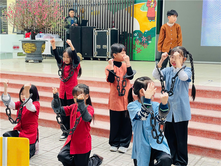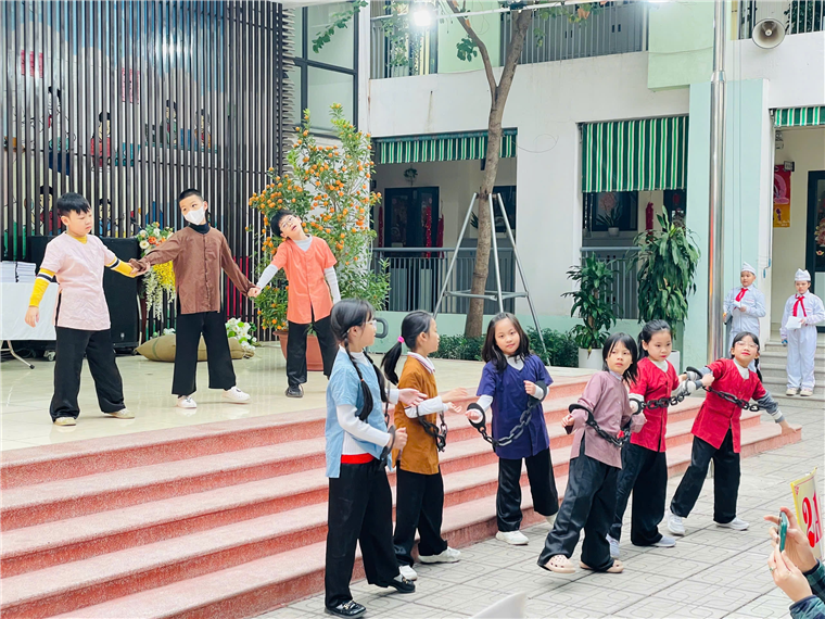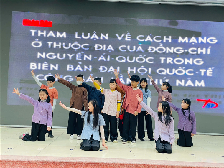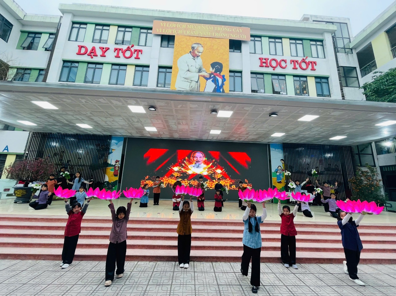 Đến với chương trình đại hội các bạn học sinh của tập thể các lớp khối 3 (3A3, 3A5, 3A6) còn mang đến tiết mục văn nghệ đặc sắc và vô cùng ý nghĩa với chủ đề Bác Hồ kính yêu. Tiết mục không chỉ đơn thuần là một phần biểu diễn nghệ thuật, mà còn là sự thể hiện lòng biết ơn và tình cảm chân thành của thế hệ thiếu nhi dành cho vị lãnh tụ vĩ đại của dân tộc. Khi tiếng nhạc vang lên cả sân trường như lắng lại. Những ca từ giản dị mà sâu lắng gợi nhớ hình ảnh Bác Hồ với bộ áo nâu sờn giản dị, nụ cười hiền hậu và ánh mắt đầy trìu mến dành cho thiếu nhi. Tiếng nhạc trong trẻo hòa quyện cùng những động tác múa nhẹ nhàng, uyển chuyển đã làm cho tiết mục thêm phần xúc động. Không chỉ dừng lại ở phần biểu diễn múa tập thể, tiết mục còn có sự kết hợp với những đoạn hoạt cảnh tái hiện lại những khoảnh khắc lịch sử.