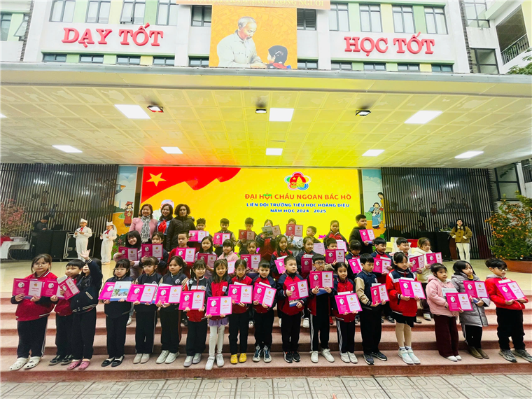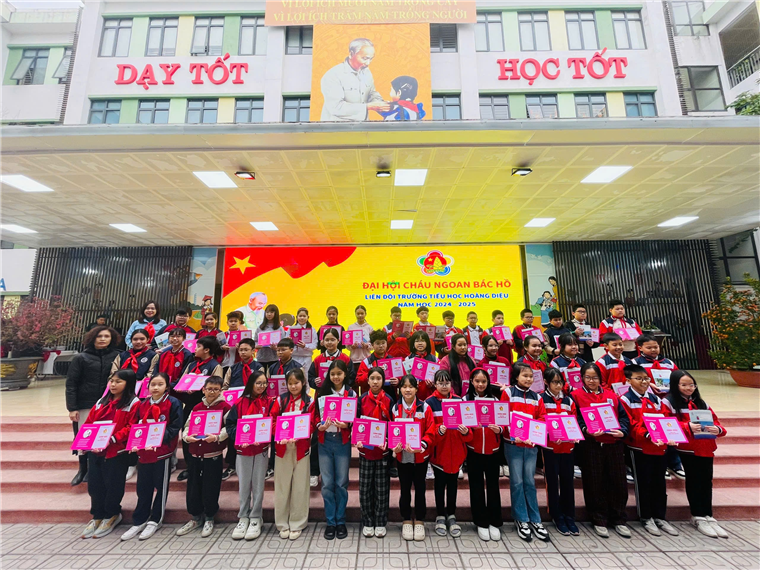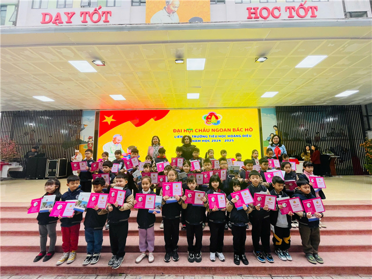 Sau đó là phần vinh danh những bạn học sinh tiêu biểu, đạt thành tích xuất sắc trong học tập và rèn luyện, xứng đáng với danh hiệu "Cháu ngoan Bác Hồ". Những gương mặt rạng rỡ, ánh mắt đầy tự hào của các bạn khi nhận giấy khen khiến các bạn học sinh ngồi phía dưới đều cảm thấy vô cùng ngưỡng mộ.