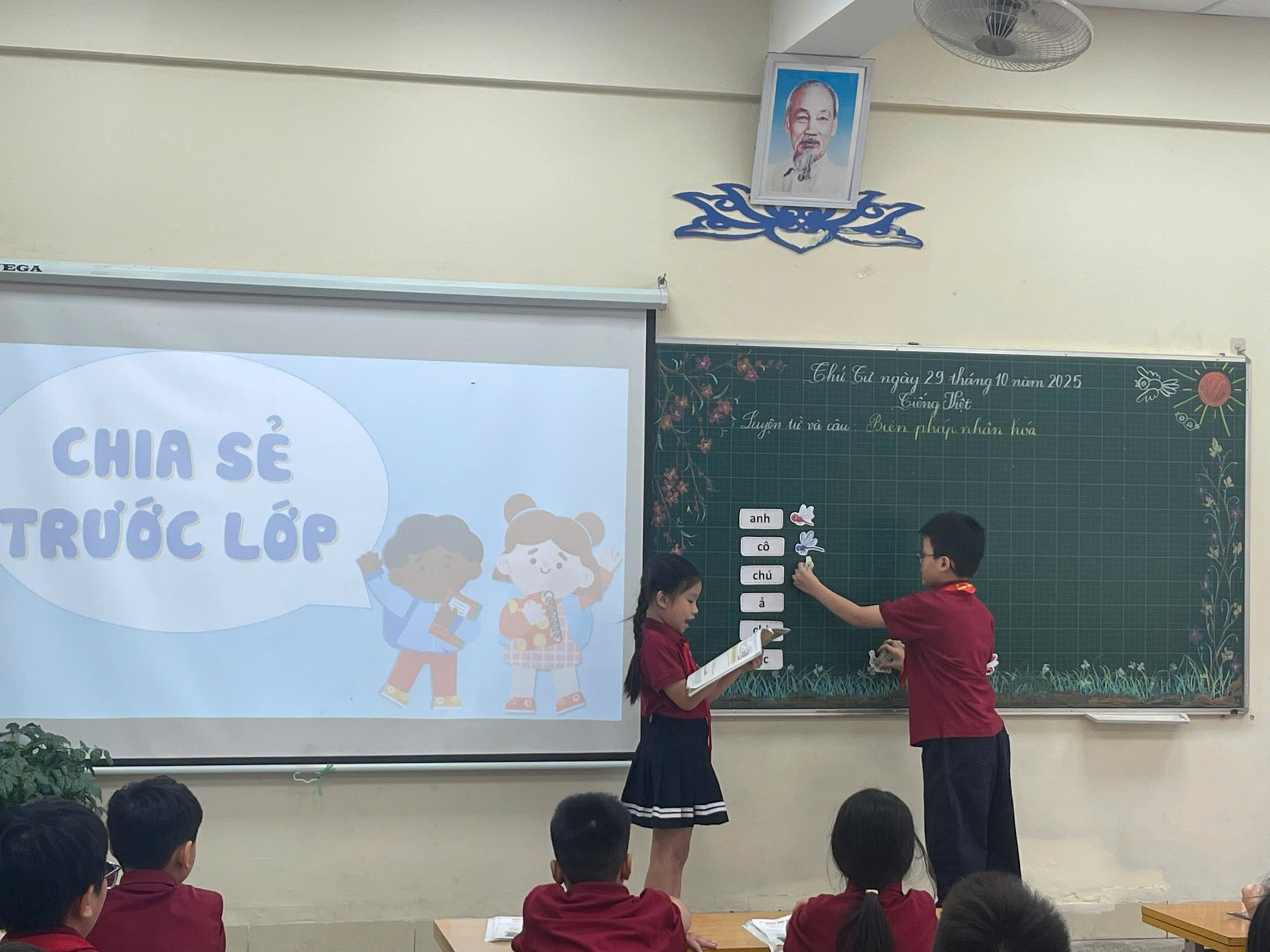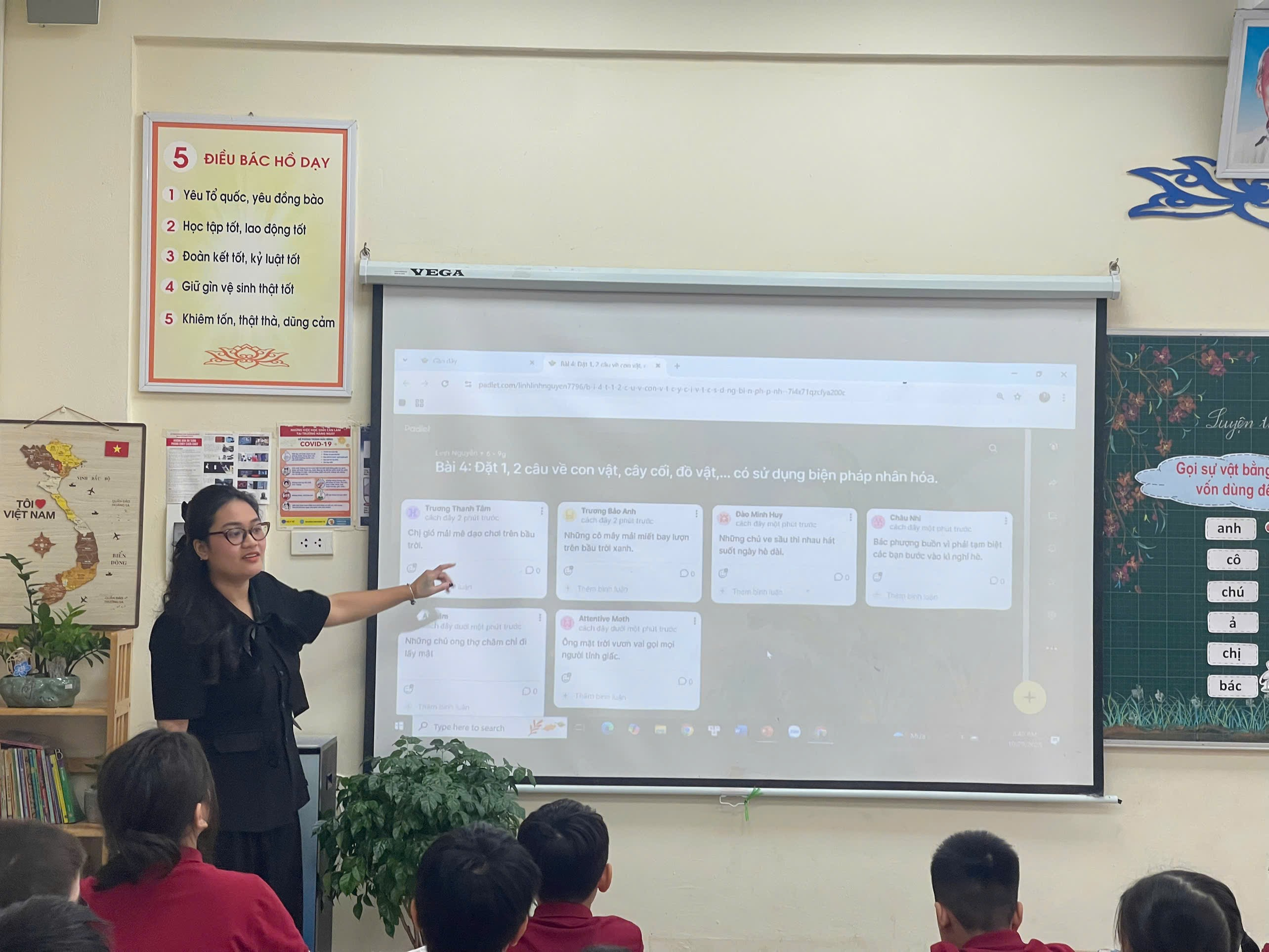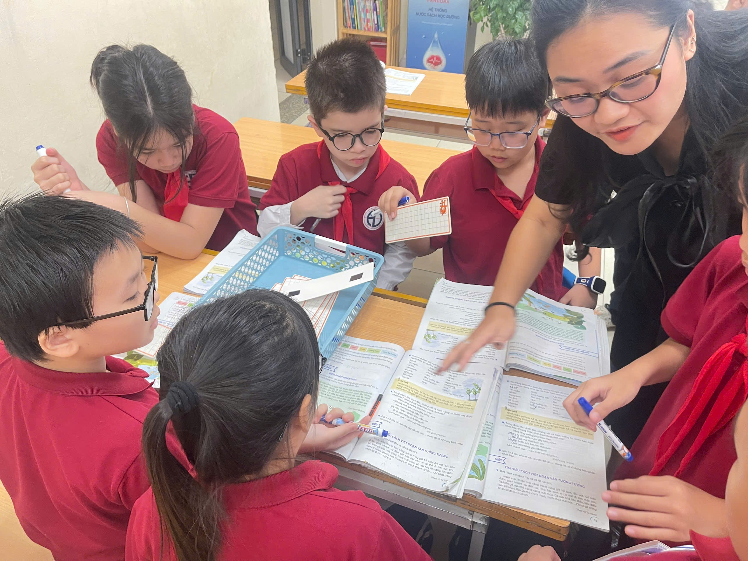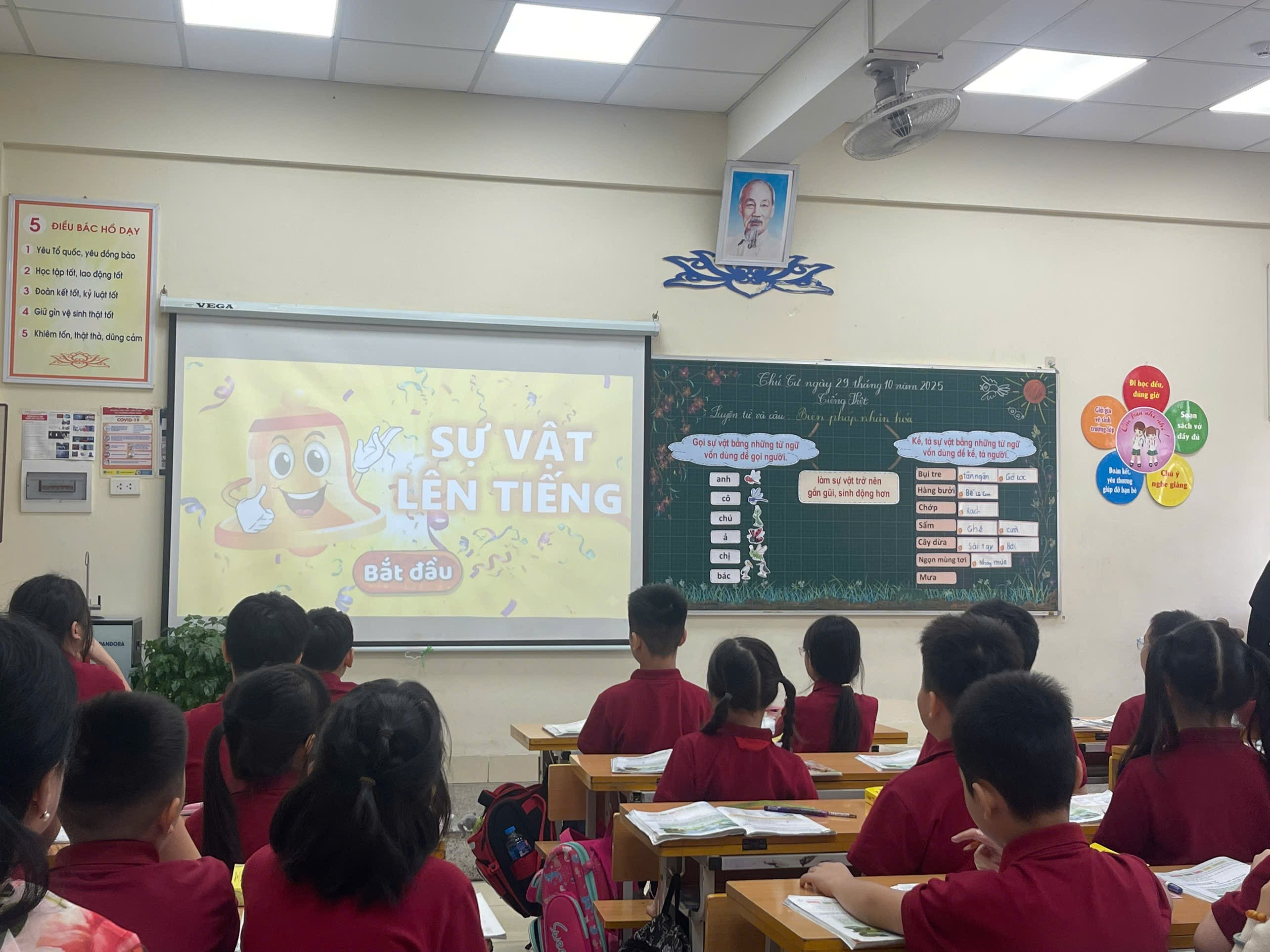 Tiết học diễn ra linh hoạt với nhiều hình thức tổ chức học tập phong phú: học theo nhóm nhỏ, thảo luận cặp đôi, trò chơi tương tác, sử dụng clip minh họa, hình ảnh trực quan và công cụ số hỗ trợ. Tất cả đã góp phần tạo nên một không khí học tập sôi nổi, tự nhiên, khơi dậy niềm hứng thú học Tiếng Việt nơi học sinh.