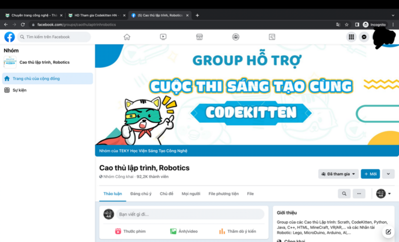 - Vàonhóm Facebook: Cao thủ lập trình, Robotics(https://www.facebook.com/groups/caothulaptrinhrobotics), ấn Tham gia nhóm