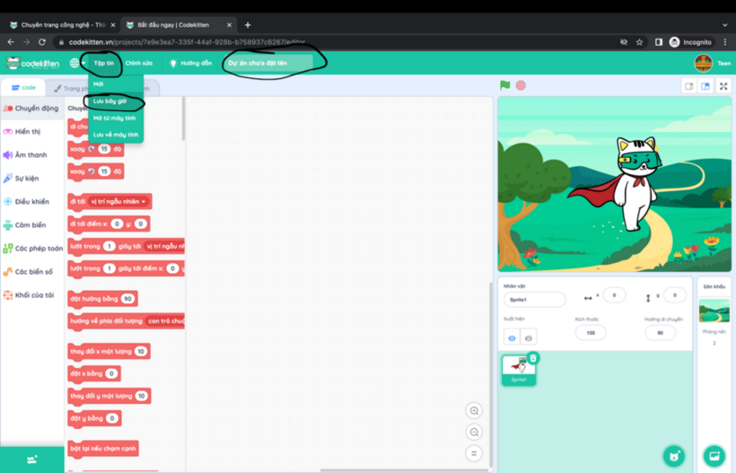 - Lưu và đặt tên cho dự án: Sau khi hoàn thành sản phẩm dự án để dự thi, đặt tên cho dự án và bấm chọn “Tệp tin”, bấm “Lưu bây giờ”