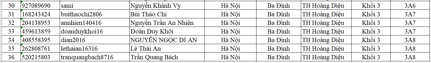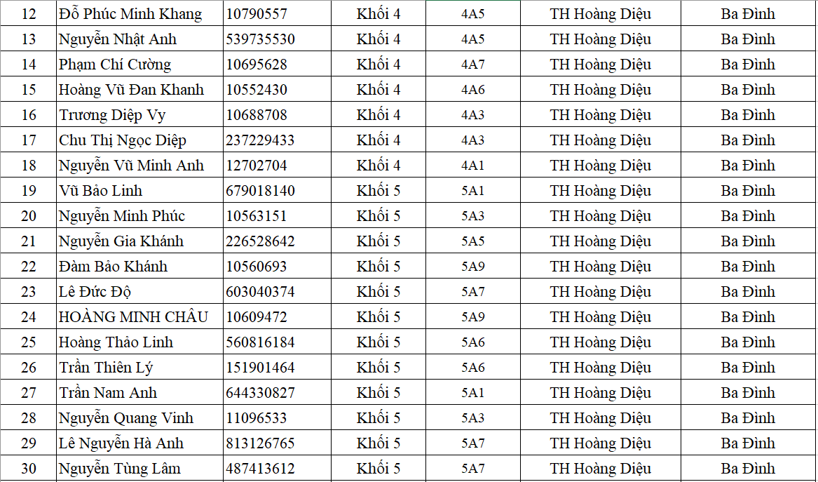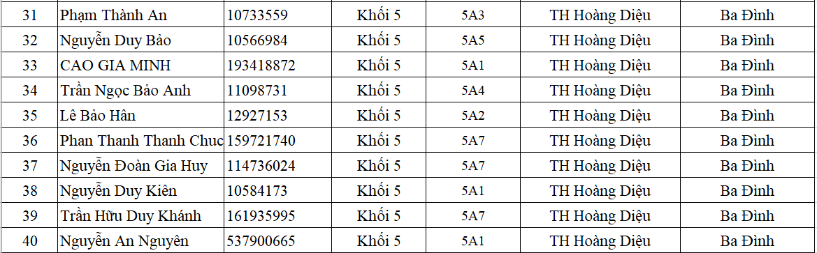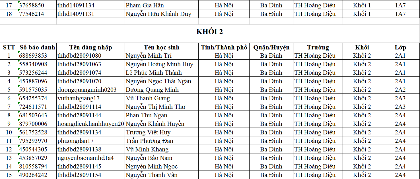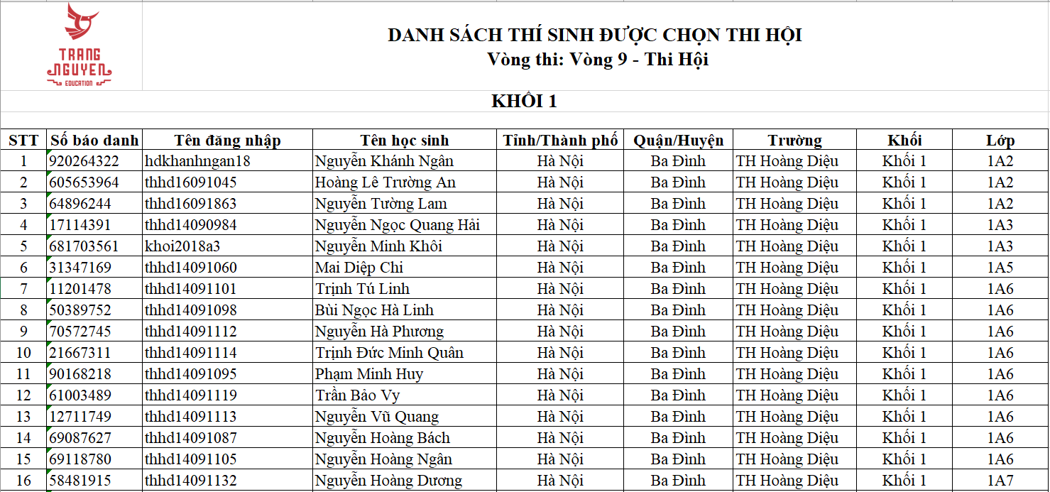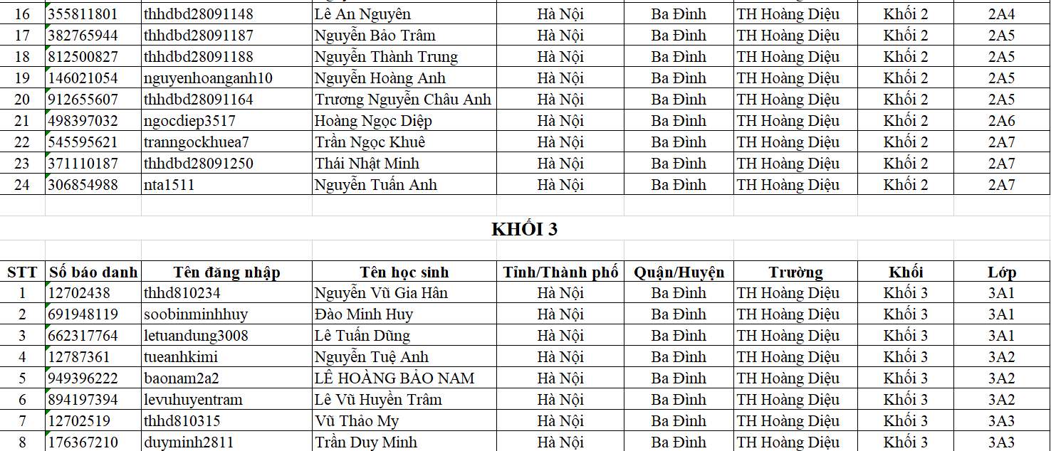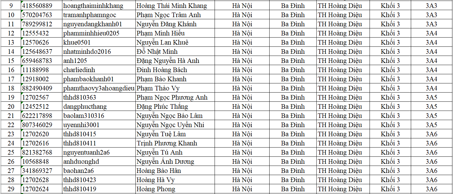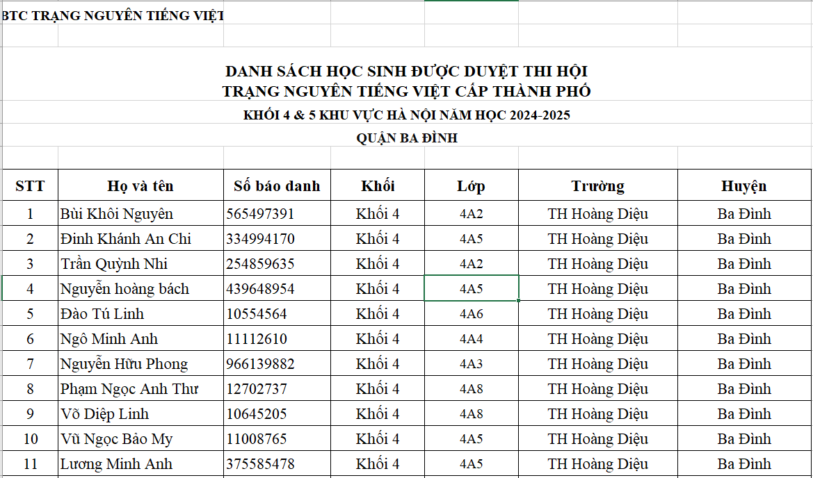 Trường Tiểu học Hoàng Diệu thông báo danh sách học sinh dự thi cấp Thành phố sân chơi Trạng Nguyên Tiếng Việt năm học 2024-2025