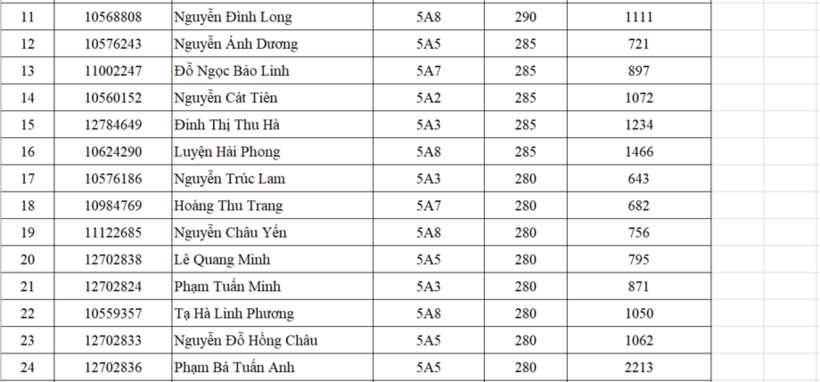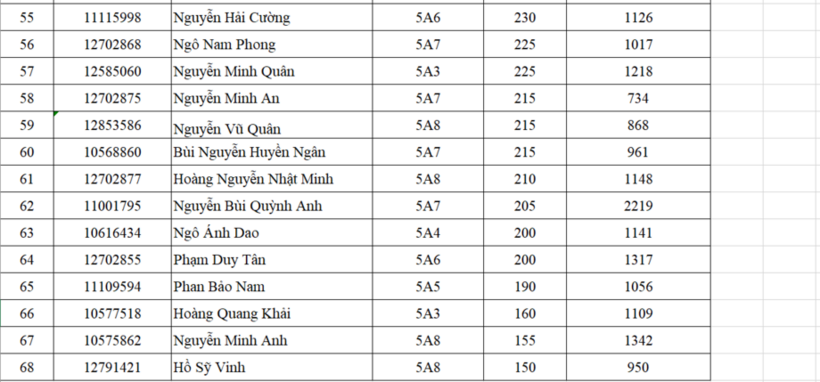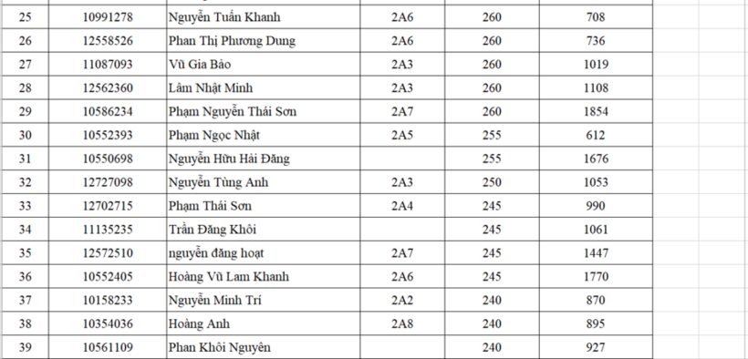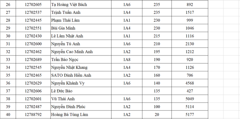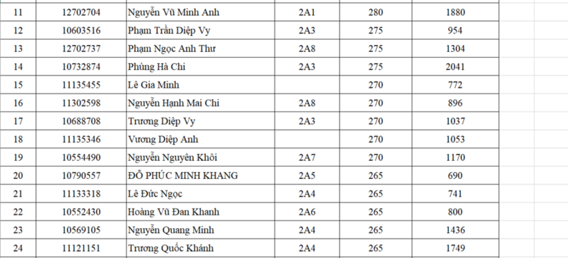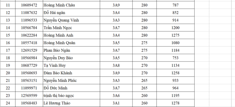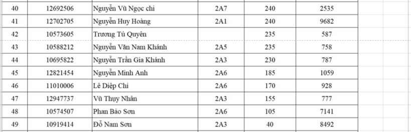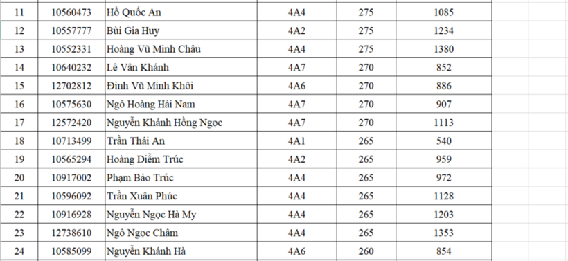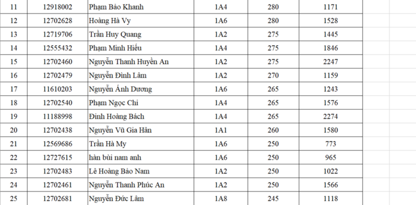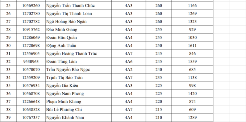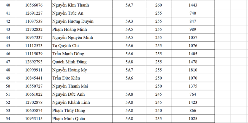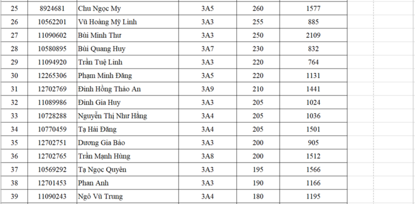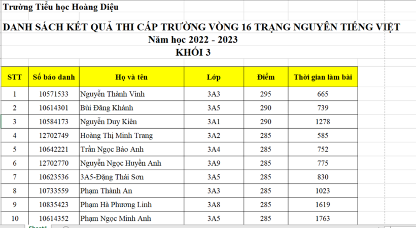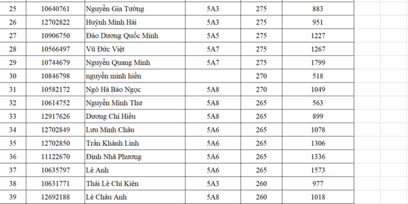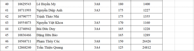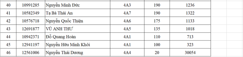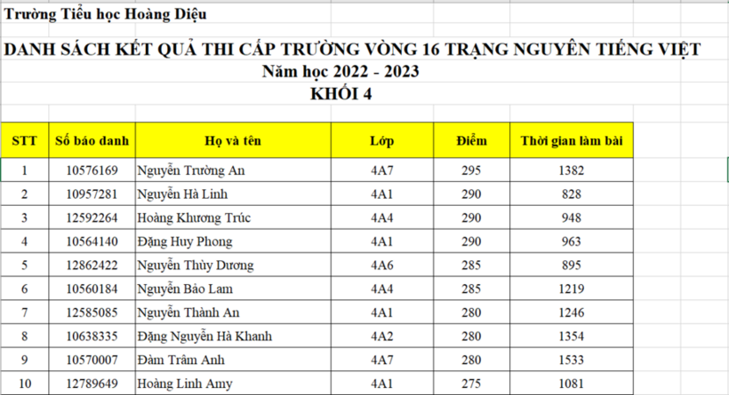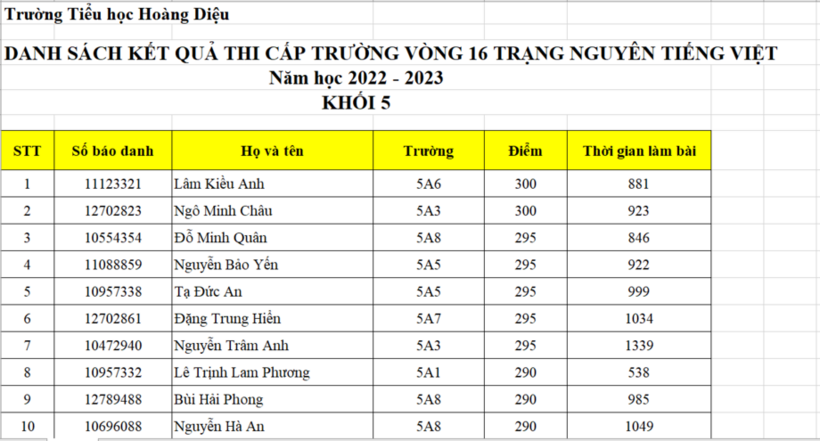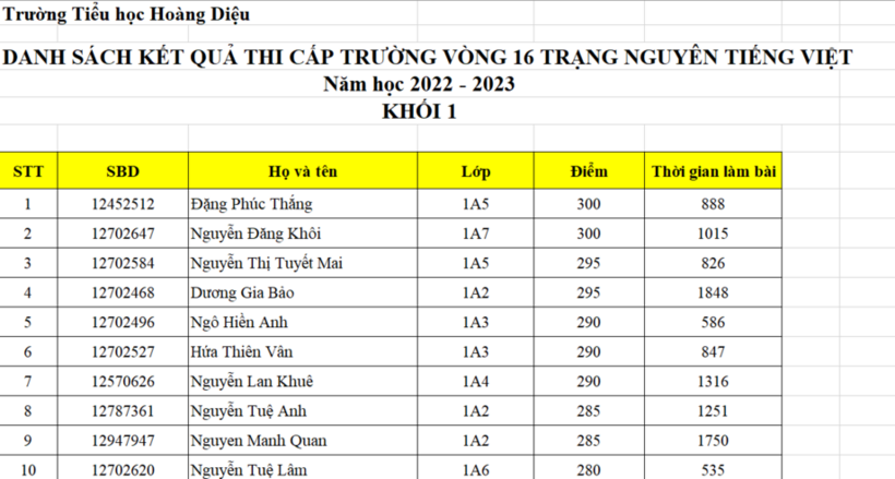 Dưới đây là kết quả thi của các con. Nhà trường xin được thông báo đến các quý phụ huynh và các con học sinh: