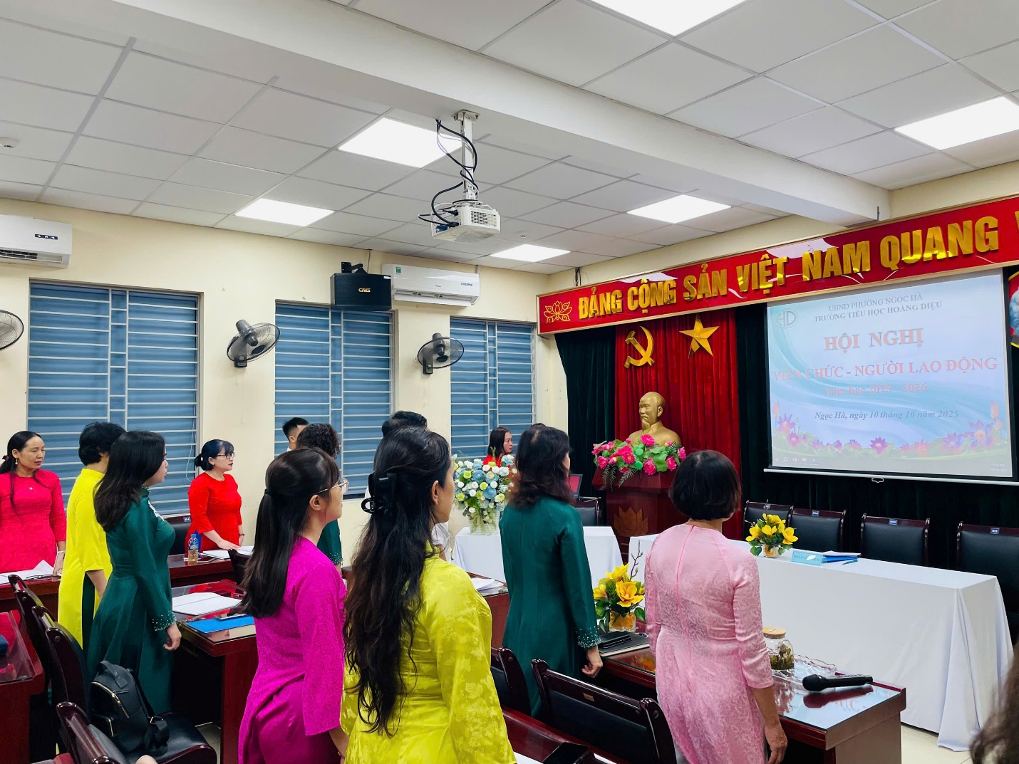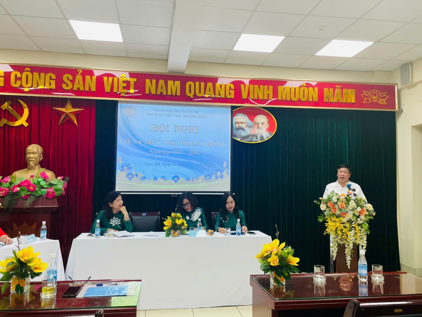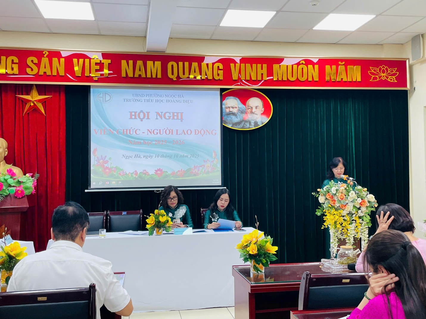 Chiều ngày 10 tháng 10 năm 2025, Trường Tiểu học Hoàng Diệu (phường Ngọc Hà, quận Ba Đình, Hà Nội) đã long trọng tổ chức Hội nghị viên chức - người lao động năm học 2025 – 2026. Đây là hoạt động thường niên có ý nghĩa quan trọng nhằm phát huy quyền làm chủ của tập thể cán bộ, giáo viên, nhân viên trong việc xây dựng kế hoạch, thực hiện nhiệm vụ năm học mới và phát động phong trào thi đua.