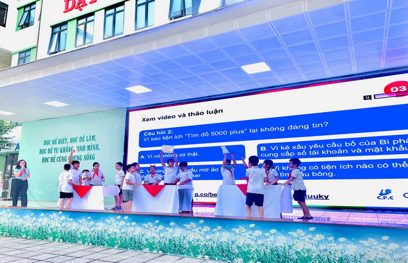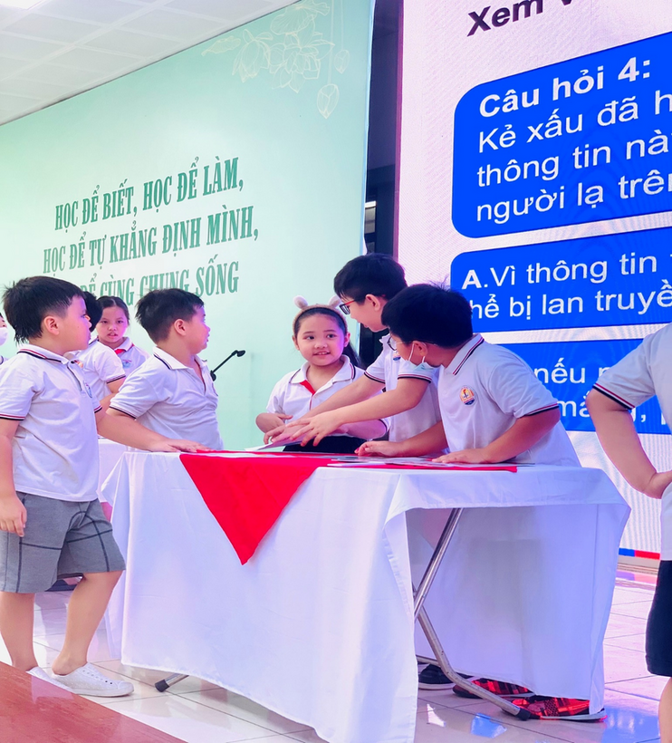 Sau hoạt động làm quen với sự chân thành, cởi mở và vui vẻ, học sinh được các tình nguyện viên CFC Việt Nam giới thiệu cụ thể và chi tiết về 5 tố chất của một người dùng Internet Tuyệt vời: Thông minh - Mạnh mẽ - Tỉnh táo - Tử tế - Can đảm. Các em học sinh đã có sự trao đổi, tương tác và tham gia trả lời các câu hỏi để tăng thêm hiểu biết và bổ sung kiến thức còn thiếu.