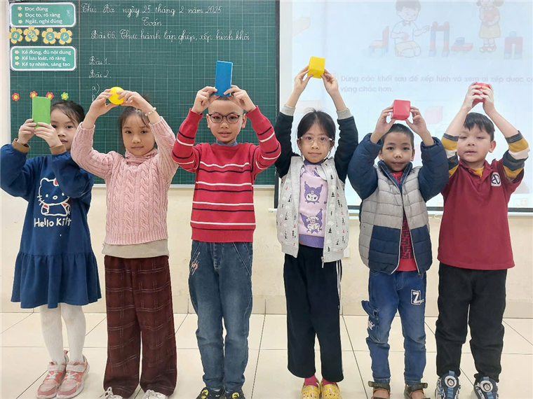 Tiết học thực hành làm các hình khối trong bài lắp ghép, sắp xếp hình khối khối không chỉ giúp các bạn học sinh hiểu rõ hơn về các khái niệm hình học cơ bản, mà còn giúp các em phát triển khả năng sáng tạo, kỹ năng làm việc thủ công, và tư duy logic. Đây là một hoạt động học tập thực hành rất bổ ích, giúp các em tiếp cận kiến thức một cách trực quan và sinh động.