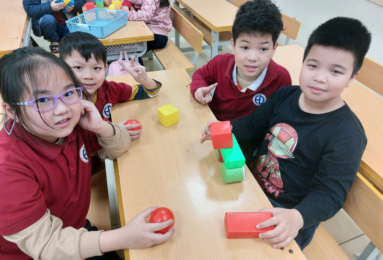 Trong tiết thực hành bài lắp ghép, sắp xếp hình khối môn Toán ngày 25/2 vừa qua, các bạn nhỏ lớp 2A1 đã được trải nghiệm làm mô hình các hình khối như: Khối cầu, khối trụ, khối hộp chữ nhật, khối lập phương. Đây là một hoạt động rất bổ ích và thú vị, giúp các bạn học sinh phát triển khả năng tư duy không gian, sự sáng tạo và kỹ năng thủ công. Đồng thời cũng là một dạng tiết học thực hành rất thiết thực, giúp các bạn tiếp cận với các hình học cơ bản thông qua việc thực hiện các thao tác thủ công.