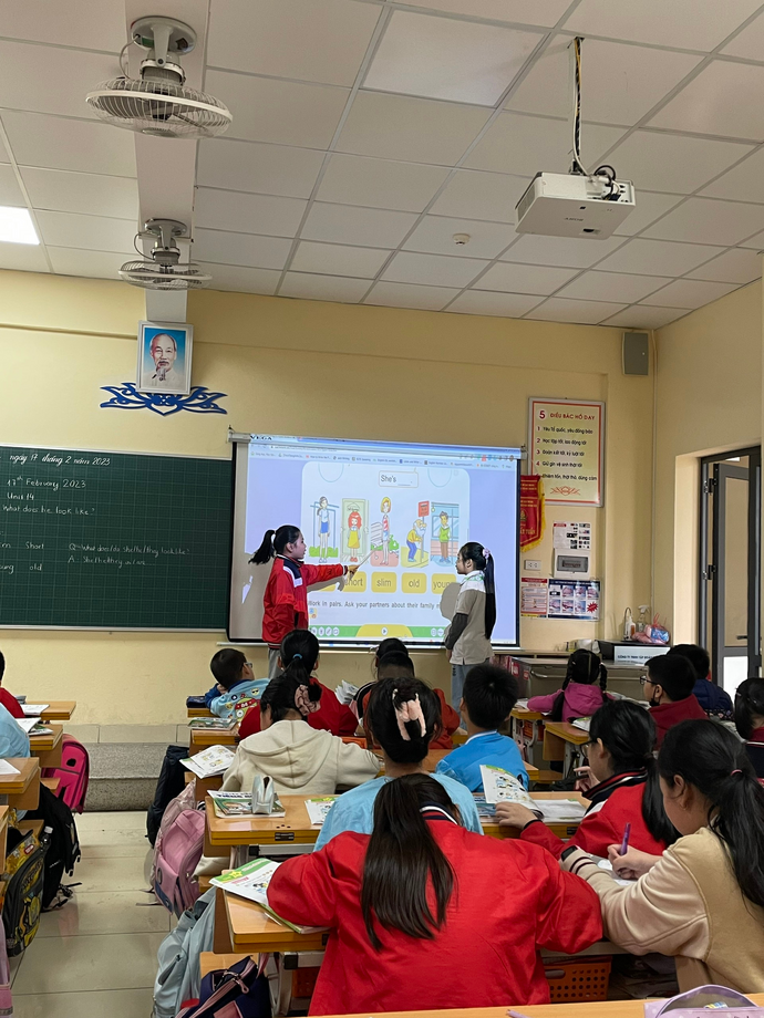 Học sinh lớp 4 tự tin xung phong luyện nói trong tiết học.