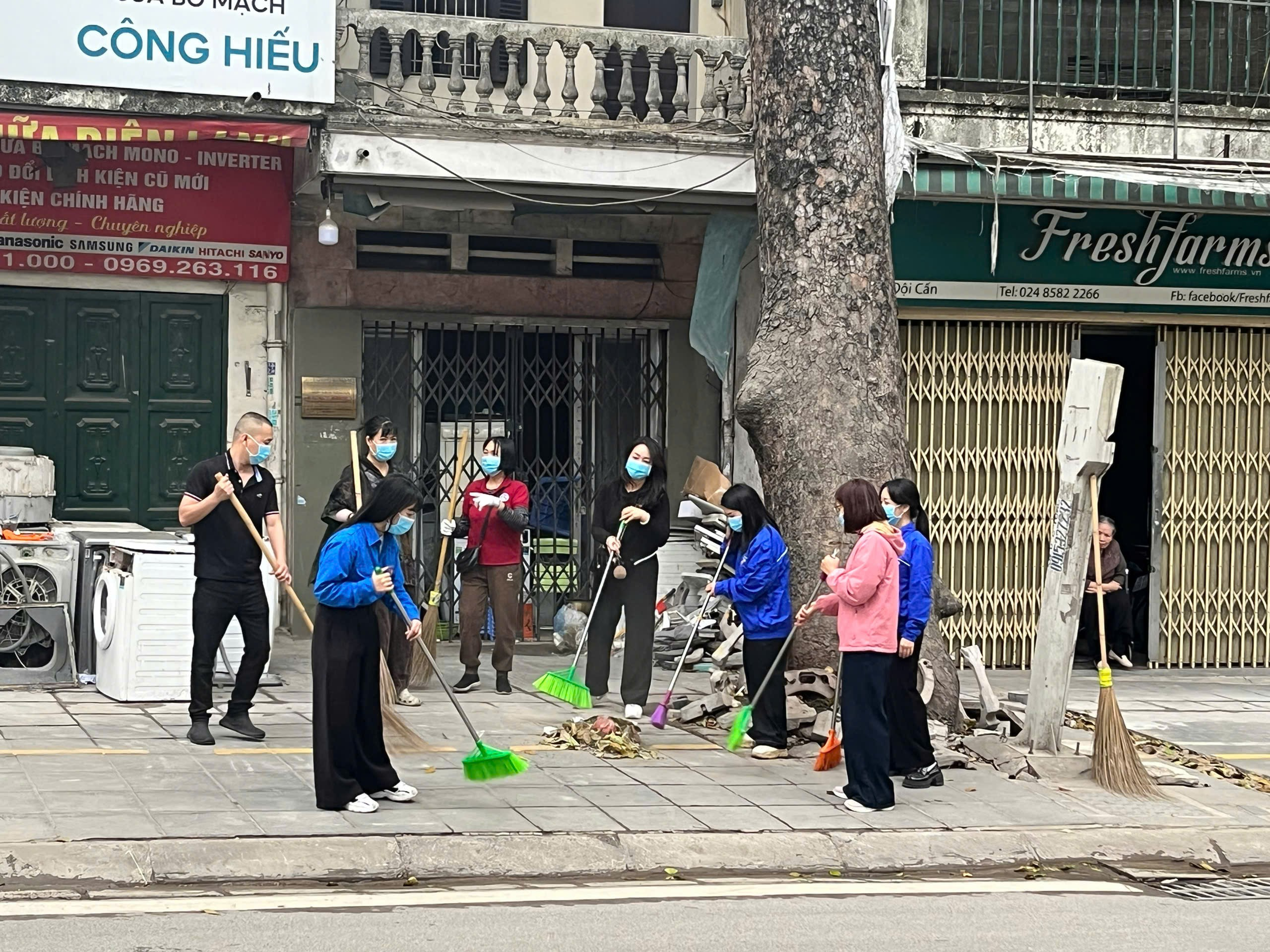 Sau lễ phát động, đoàn tiếp tục di chuyển đến các tuyến phố trọng điểm như đường Bưởi, Phan Kế Bính, Linh Lang, Đội Cấn và nhiều khu dân cư khác,... khu vực được UBND phường lựa chọn làm điểm tổng vệ sinh. Tại đây, mọi người phối hợp thực hiện các công việc: quét dọn lòng đường, vỉa hè, thu gom rác thải, nhặt bỏ vật cản, làm sạch các khu vực công cộng và cảnh quan đô thị. Dưới sự chỉ đạo thống nhất, hoạt động diễn ra sôi nổi, hiệu quả và trật tự, mang lại diện mạo khang trang cho tuyến đường trọng điểm của phường.