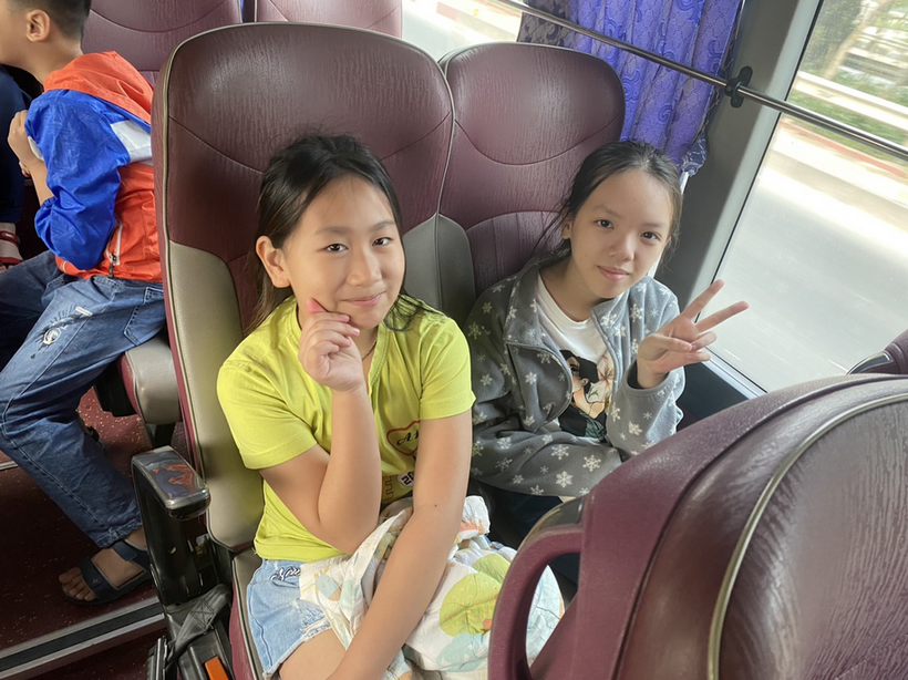 Đúng 7h30’ đoàn xe bắt đầu xuất phát. Trên xe, ai nấy đều hứng khởi, rạng ngời niềm vui, sự thích thú. Mặc dù vậy, các bạn cũng không quên chăm chú lắng nghe thầy cô nhắc nhở về nội quy cũng như lịch trình của chuyến đi. Suốt từ khi xe lăn bánh, không khí trên xe lúc nào cũng náo nhiệt. Các bạn học sinh trên xe thi nhau hát, kể chuyện, pha trò… Mọi áp lực học hành đều được tạm thời giũ bỏ.