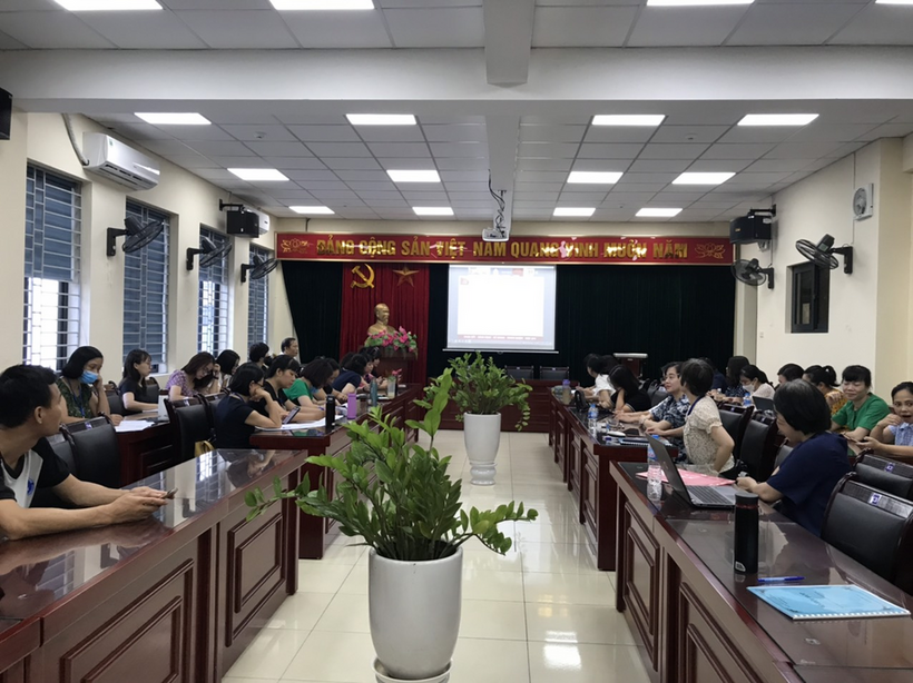 Đúng 8h tại điểm cầu trường Tiểu học Hoàng Diệu, 70 CB – GV – NV của nhà trường đã có mặt đầy đủ tại phòng Hội đồng để tham dự lớp tập huấn. 100% đồng chí tham dự hoàn thành bài thu hoạch ngay sau buổi học.