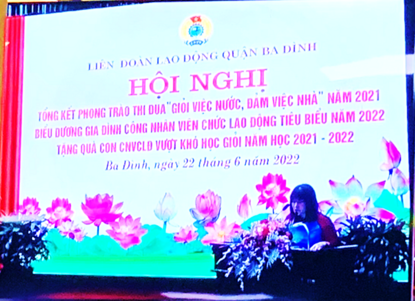 Hai bông hoa của trường Tiểu học Hoàng Diệu trong Hội nghị tổng kết phong trào “giỏi việc nước, đảm việc nhà” và tuyên dương “gia đình CBCNVC tiêu biểu” của quận Ba Đình.