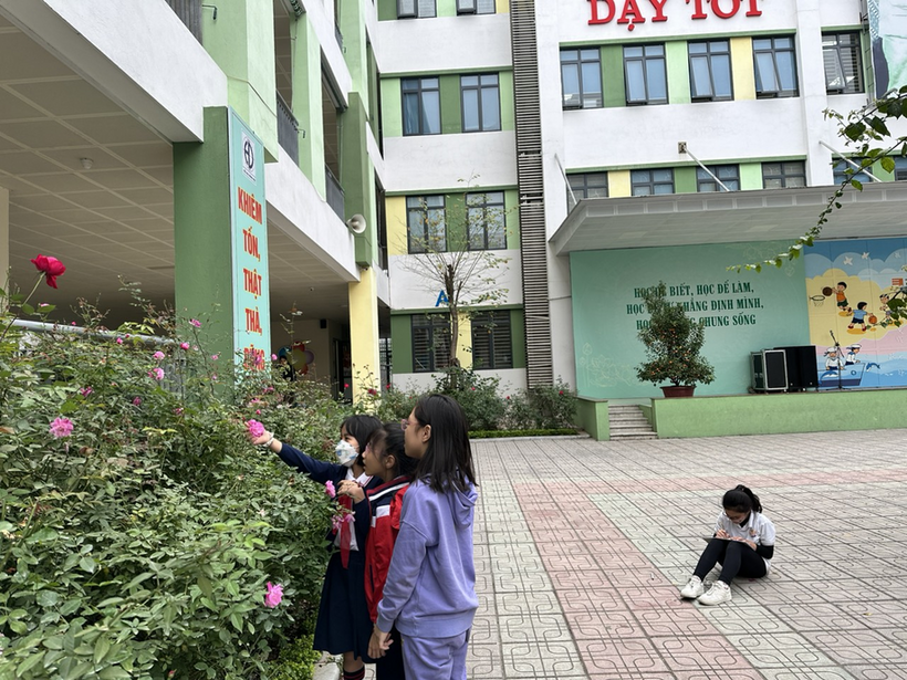 Được ra khỏi không gian lớp học, các em vui như “chim sổ lồng” nhưng vẫn trật tự xếp hàng, lắng nghe cô giáo hướng dẫn quan sát. Sau đó tùy ý di chuyển, có em đi theo nhóm, có em quan sát một mình. Các em thực sự say sưa quan sát, ghi chép cẩn thận, thỉnh thoảng lại reo lên thích thú khi thấy vài chú ong, cô bướm đến vờn bên hoa.