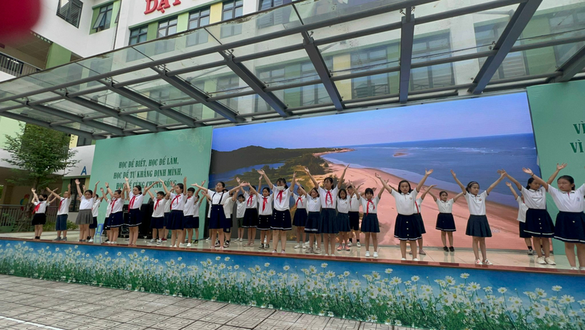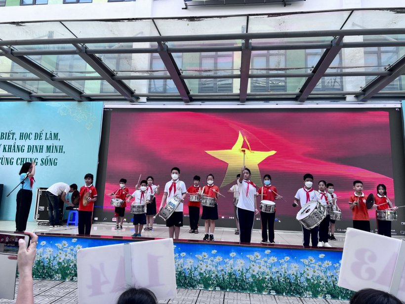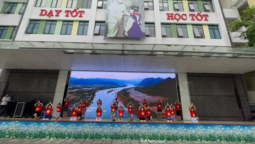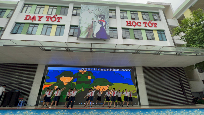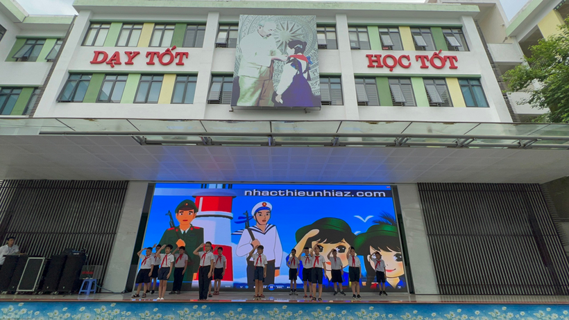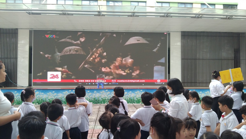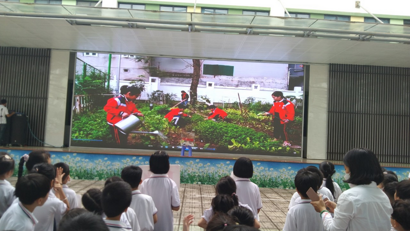 Tiết mục sinh hoạt đầu tuần của HS hiệu quả cao nhờ màn hình LED.