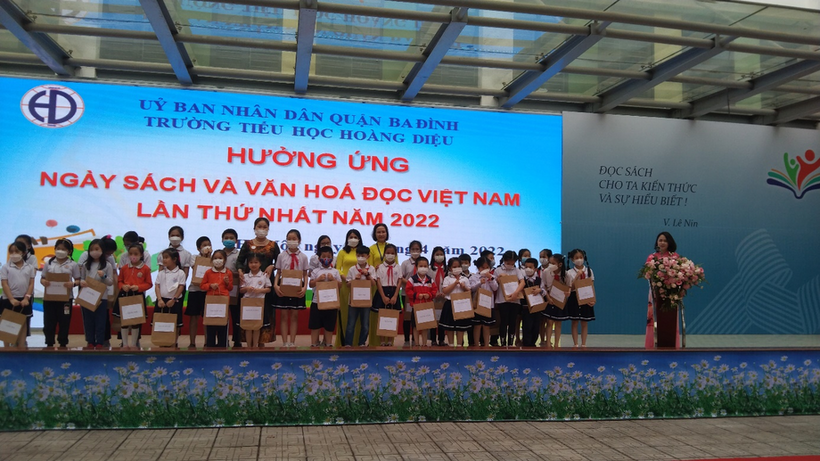 Học sinh được xem những thước phim lịch sử đầy hào hùng của dân tộc qua màn ảnh rộng tại sân trường.