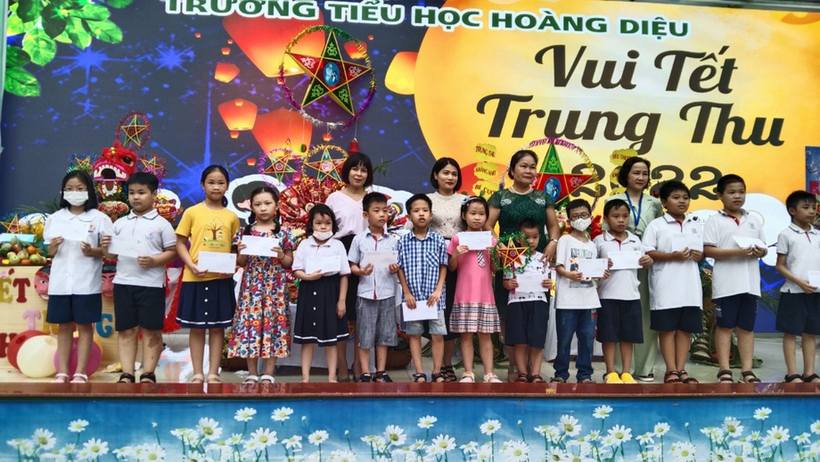 Học sinh có hoàn cảnh khó khăn được trao quà trong ngày tết Trung thu.