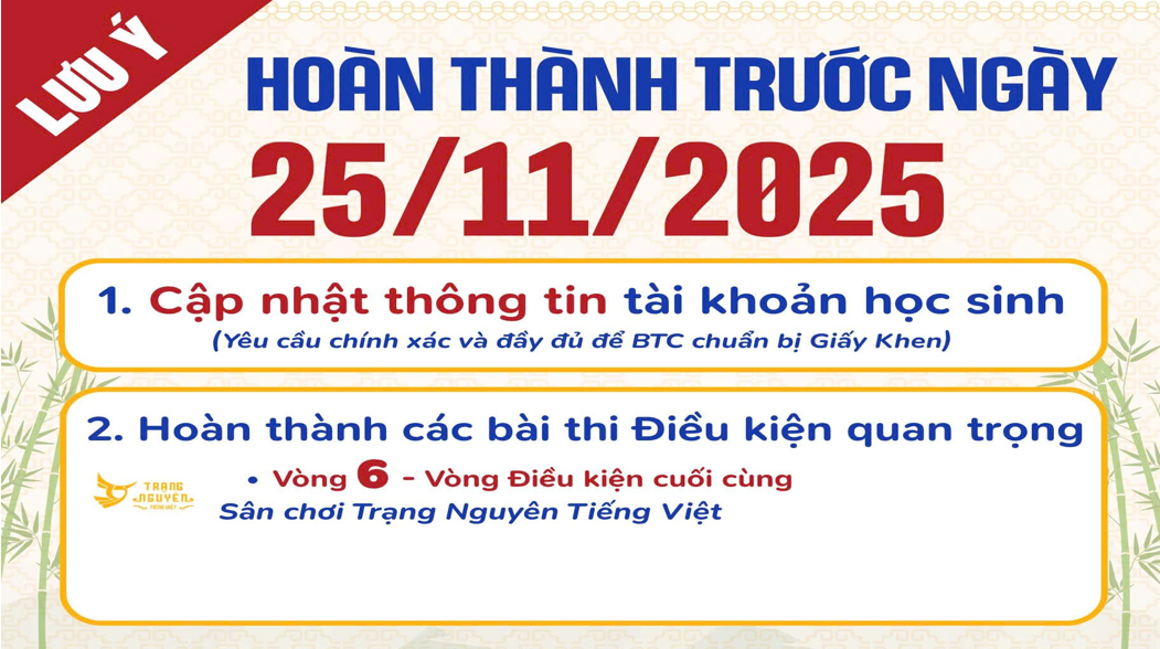 Học sinh cần hoàn thành các nội dung sau trước ngày 25/11/2025 để đảm bảo quyền lợi của mình.