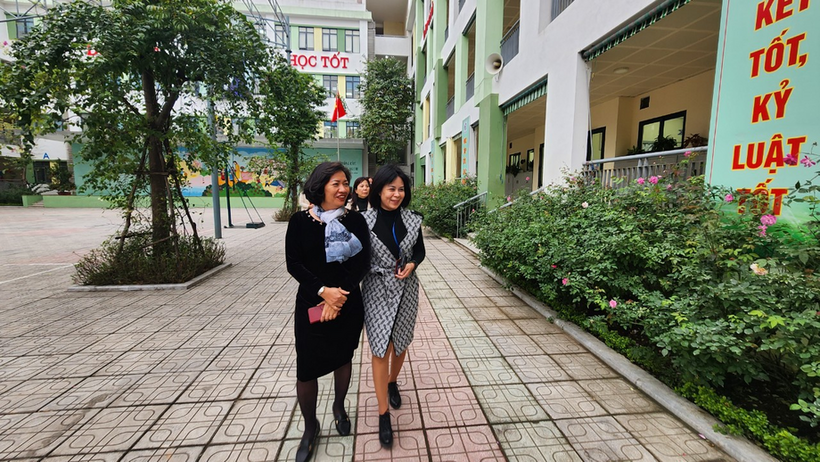 Cô giáo Trần Thị Tố Trinh – phó hiệu trưởng trường Tiểu học Hoàng Diệu đã dẫn đoàn đi tham quan cơ sở vật chất của nhà trường.