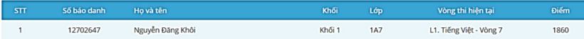Sân chơi Trạng nguyên Tiếng Việt đã trải qua 15 vòng thi, hiện tại các trạng nguyên nhí đang chuẩn bị chờ đón vòng thi 16 - vòng thi Trạng Nguyên cấp trường. Trường Tiểu học Hoàng Diệu xin gửi tới các thầy cô giáo, các quý vị phụ huynh và các con học sinh thông tin về danh sách học sinh lớp 1A7 tham gia cuộc thi Trạng nguyên Tiếng Việt đến thời điểm hiện tại cùng điểm thi của các con. Từ nay đến khi tổ chức vòng thi cấp trường vẫn còn nhiều thời gian để các con tham gia sân chơi này. Nếu bạn nào chưa thi hết vòng 15, các con hãy tiếp tục làm bài thi nhé. Nếu bạn nào muốn tham gia, hãy tạo tài khoản và tham gia thi ngay nhé. Nhà trường mong các con hãy nỗ lực cố gắng thử sức và giành những điểm số cao trong cuộc thi thú vị và bổ ích này.