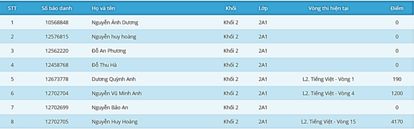 Sân chơi Trạng nguyên Tiếng Việt đã trải qua 15 vòng thi, hiện tại các trạng nguyên nhí đang chuẩn bị chờ đón vòng thi 16 - vòng thi Trạng Nguyên cấp trường. Trường Tiểu học Hoàng Diệu xin gửi tới các thầy cô giáo, các quý vị phụ huynh và các con học sinh thông tin về danh sách học sinh lớp 2A1 tham gia cuộc thi Trạng nguyên Tiếng Việt đến thời điểm hiện tại cùng điểm thi của các con. Từ nay đến khi tổ chức vòng thi cấp trường vẫn còn nhiều thời gian để các con tham gia sân chơi này. Nếu bạn nào chưa thi hết vòng 15, các con hãy tiếp tục làm bài thi nhé. Nếu bạn nào muốn tham gia, hãy tạo tài khoản và tham gia thi ngay nhé. Nhà trường mong các con hãy nỗ lực cố gắng thử sức và giành những điểm số cao trong cuộc thi thú vị và bổ ích này.