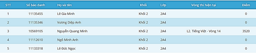 Sân chơi Trạng nguyên Tiếng Việt đã trải qua 15 vòng thi, hiện tại các trạng nguyên nhí đang chuẩn bị chờ đón vòng thi 16 - vòng thi Trạng Nguyên cấp trường. Trường Tiểu học Hoàng Diệu xin gửi tới các thầy cô giáo, các quý vị phụ huynh và các con học sinh thông tin về danh sách học sinh lớp 2A4 tham gia cuộc thi Trạng nguyên Tiếng Việt đến thời điểm hiện tại cùng điểm thi của các con. Từ nay đến khi tổ chức vòng thi cấp trường vẫn còn nhiều thời gian để các con tham gia sân chơi này. Nếu bạn nào chưa thi hết vòng 15, các con hãy tiếp tục làm bài thi nhé. Nếu bạn nào muốn tham gia, hãy tạo tài khoản và tham gia thi ngay nhé. Nhà trường mong các con hãy nỗ lực cố gắng thử sức và giành những điểm số cao trong cuộc thi thú vị và bổ ích này.