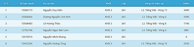 Sân chơi Trạng nguyên Tiếng Việt đã trải qua 15 vòng thi, hiện tại các trạng nguyên nhí đang chuẩn bị chờ đón vòng thi 16 - vòng thi Trạng Nguyên cấp trường. Trường Tiểu học Hoàng Diệu xin gửi tới các thầy cô giáo, các quý vị phụ huynh và các con học sinh thông tin về danh sách học sinh lớp 3A1 tham gia cuộc thi Trạng nguyên Tiếng Việt đến thời điểm hiện tại cùng điểm thi của các con. Từ nay đến khi tổ chức vòng thi cấp trường vẫn còn nhiều thời gian để các con tham gia sân chơi này. Nếu bạn nào chưa thi hết vòng 15, các con hãy tiếp tục làm bài thi nhé. Nếu bạn nào muốn tham gia, hãy tạo tài khoản và tham gia thi ngay nhé. Nhà trường mong các con hãy nỗ lực cố gắng thử sức và giành những điểm số cao trong cuộc thi thú vị và bổ ích này.