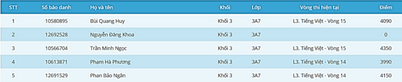 Sân chơi Trạng nguyên Tiếng Việt đã trải qua 15 vòng thi, hiện tại các trạng nguyên nhí đang chuẩn bị chờ đón vòng thi 16 - vòng thi Trạng Nguyên cấp trường. Trường Tiểu học Hoàng Diệu xin gửi tới các thầy cô giáo, các quý vị phụ huynh và các con học sinh thông tin về danh sách học sinh lớp 3A7 tham gia cuộc thi Trạng nguyên Tiếng Việt đến thời điểm hiện tại cùng điểm thi của các con. Từ nay đến khi tổ chức vòng thi cấp trường vẫn còn nhiều thời gian để các con tham gia sân chơi này. Nếu bạn nào chưa thi hết vòng 15, các con hãy tiếp tục làm bài thi nhé. Nếu bạn nào muốn tham gia, hãy tạo tài khoản và tham gia thi ngay nhé. Nhà trường mong các con hãy nỗ lực cố gắng thử sức và giành những điểm số cao trong cuộc thi thú vị và bổ ích này.
