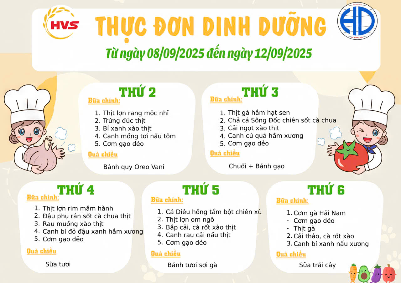 Thực đơn bán trú từ 8/9 đến 12/9/2025