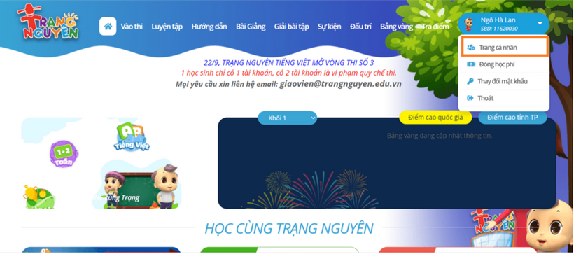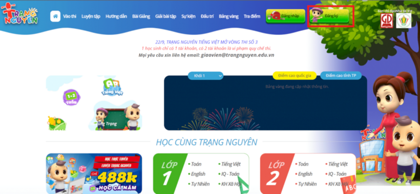 Để thực hiện đăng kí tài khoản tham gia Trạng Nguyên Tiếng Việt, chúng ta thực hiện các bước sau: