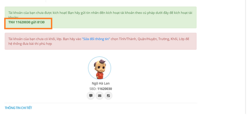 Sau khi đăng kí tài khoản thành công, bạn cần ghi nhớ 4 thông tin quan trọng: mã số báo danh (SBD/ID), tên đăng nhập và mật khẩu, số điện thoại đăng ký tài khoản.