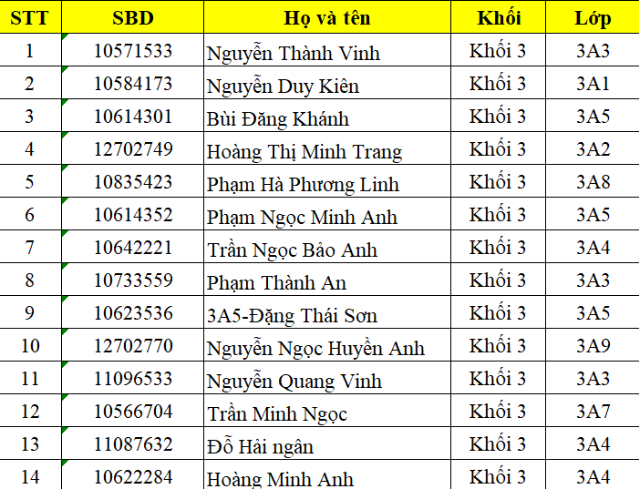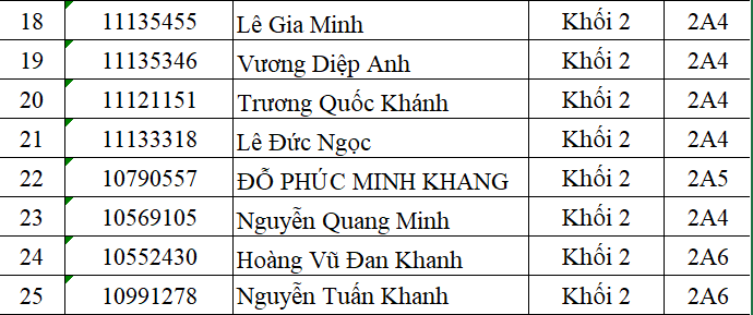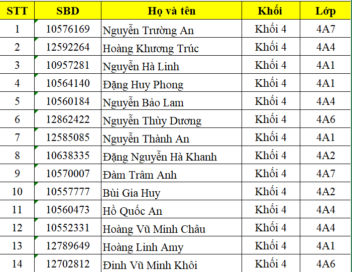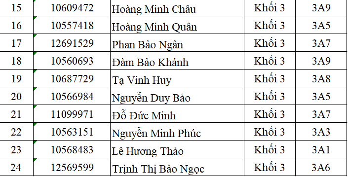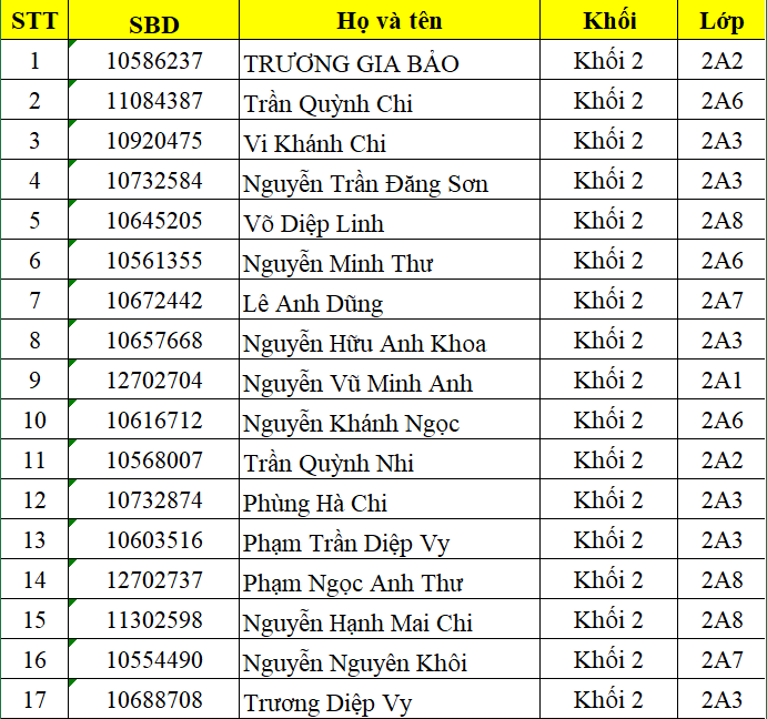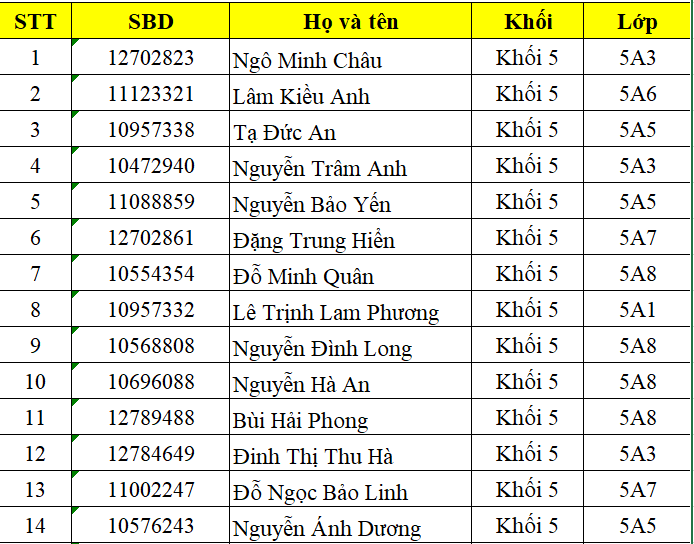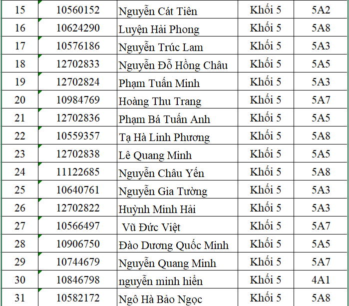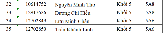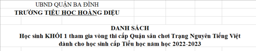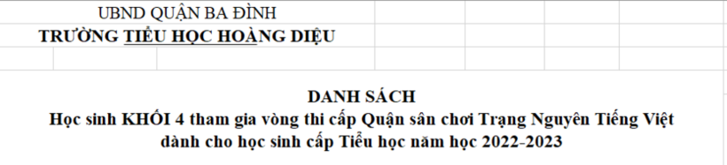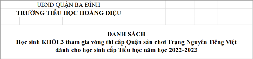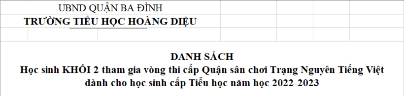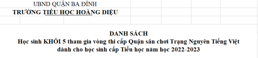 8. Danh sách HS đủ điều kiện tham gia thi Trạng nguyên Tiếng Việt Kì thi Hương (cấp Quận) sân chơi “Trạng Nguyên Tiếng Việt” trên Internet năm học 2022 - 2023 (Danh sách giữ nguyên theo thông báo trước)