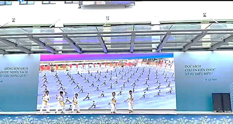Mở đầu buổi lễ, các con học sinh lớp 1 rất thích thú và hào hứng với những tiết mục văn nghệ sôi động, vui tươi mà các anh chị lớp trên biểu diễn.