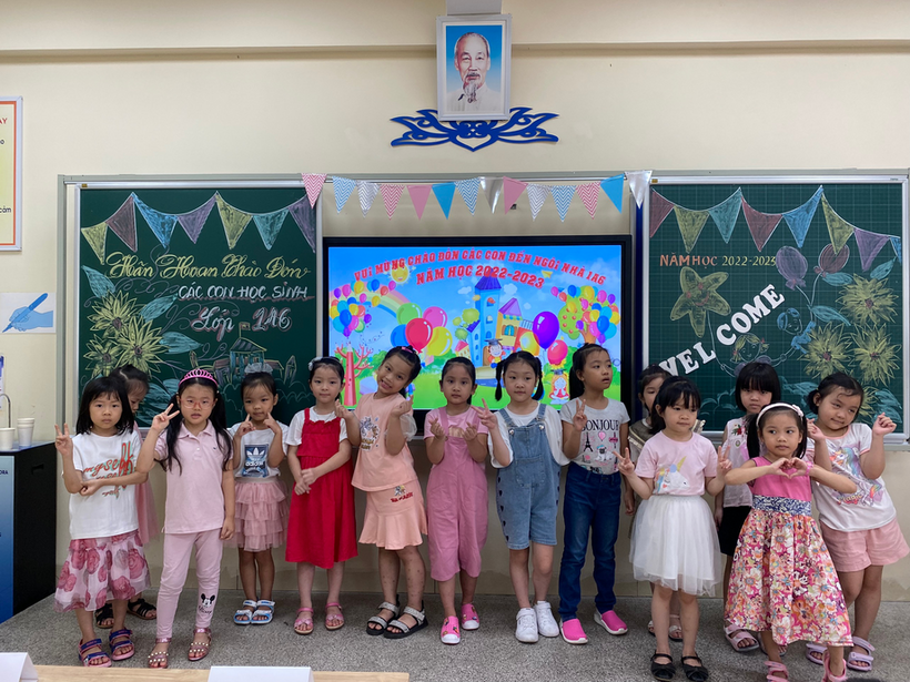 Buổi đón học sinh lớp 1 diễn ra trong không khí trang trọng nhưng tràn đầy cảm xúc. Hình ảnh các cô giáo lớp 1 nhẹ nhàng trong những tà áo dài ân cần chào đón các con khiến các bậc phụ huynh - những người làm cha, làm mẹ hôm nay - được ngồi cùng như được quay ngược thời gian trở về tuổi thơ cắp sách đến trường. Những ánh mắt trìu mến và giọng nói dịu dàng của các cô như xoá tan đi nỗi lo âu của ngày đầu đến trường, giúp cha mẹ học sinh thêm phấn khởi, tin yêu.