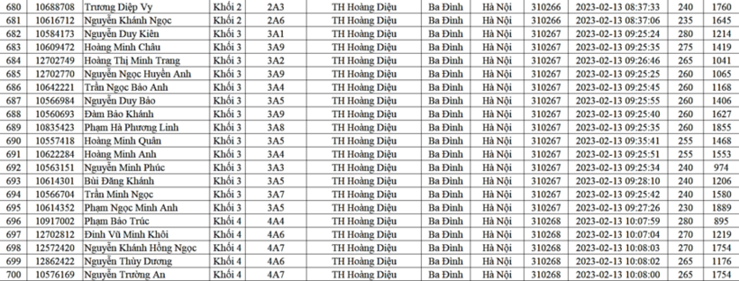 VIII. Danh sách HS trường Tiểu học Hoàng Diệu đủ điều kiện tham gia thi Trạng nguyên Tiếng Việt cấp Thành phố: