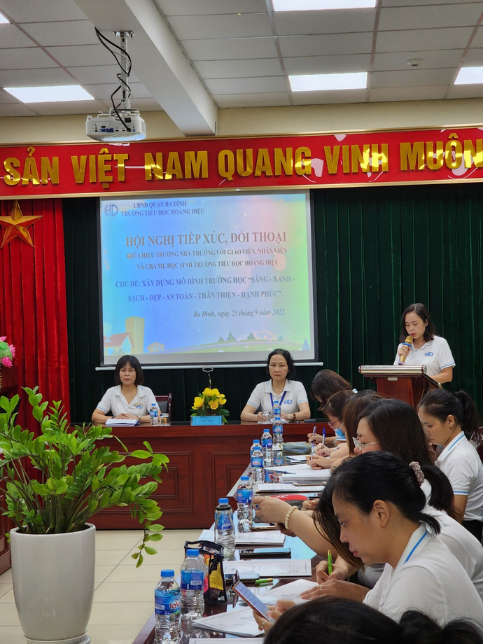 Trong những năm qua, nhà trường đã tổ chức nhiều hội nghị đối thoại có chất lượng, thiết thực, liên quan đến nhu cầu, nguyện vọng của đông đảo cha mẹ, học sinh và các thầy cô giáo. Có thể nói, công tác xây dựng mô hình trường học “Sáng – xanh – sạch – đẹp – an toàn – thân thiện – hạnh phúc là một nhiệm vụ quan trọng hàng đầu của nhà trường trong năm học 2022 - 2023.