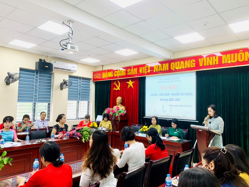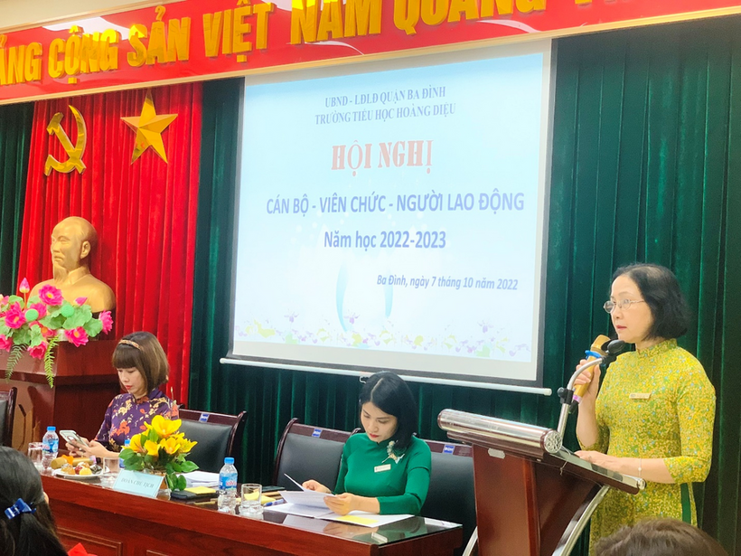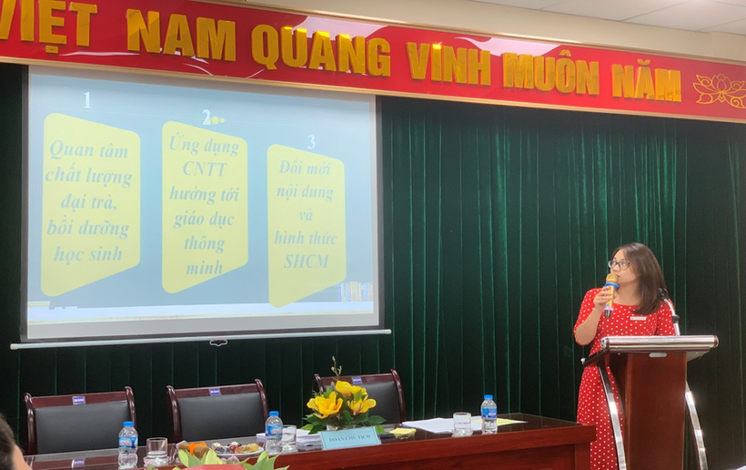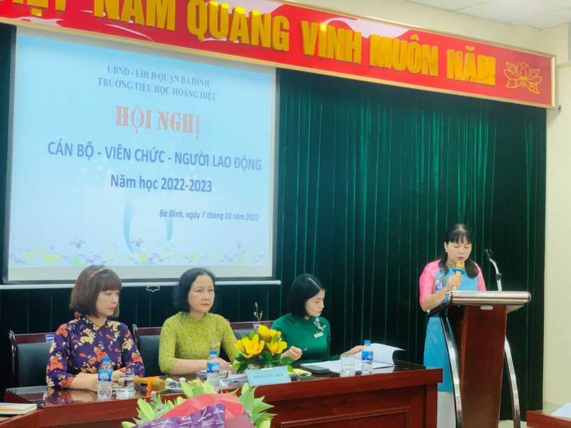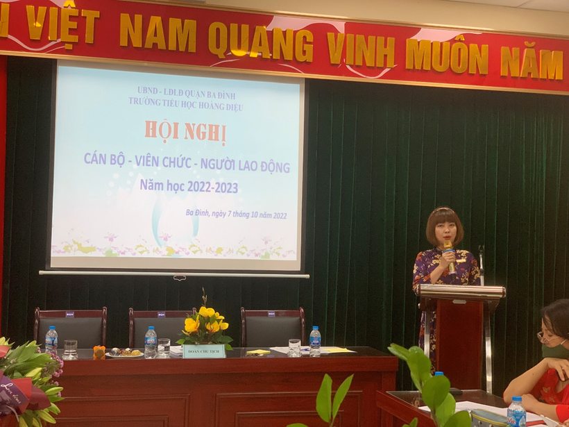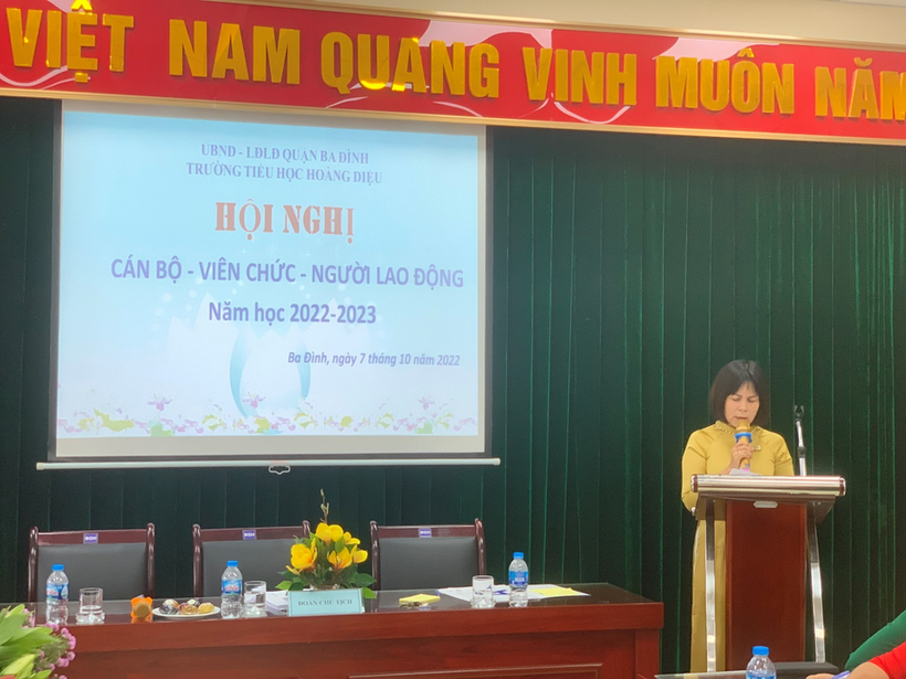 Hội nghị cũng nghe đồng chí Nguyễn Thu Hà – CTCĐ báo cáo tổng kết phong trào thi đua năm học 2021-2022 và dự kiến nội dung giao ước thi đua năm học 2022 - 2023.