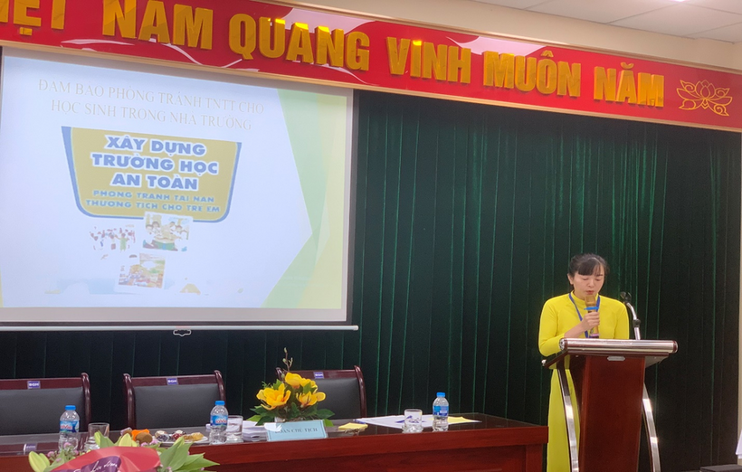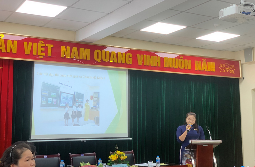Đ/c Nguyễn Kiều Huyền – Giáo viên Khối 3 trình bày tham luận trong Hội nghị