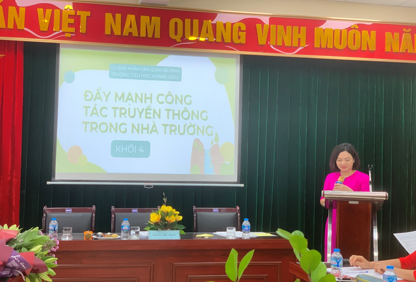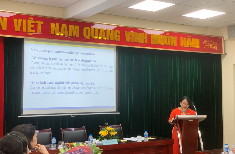 Đ/c Đỗ Thu Hà – Giáo viên Khối 2 trình bày tham luận trong Hội nghị