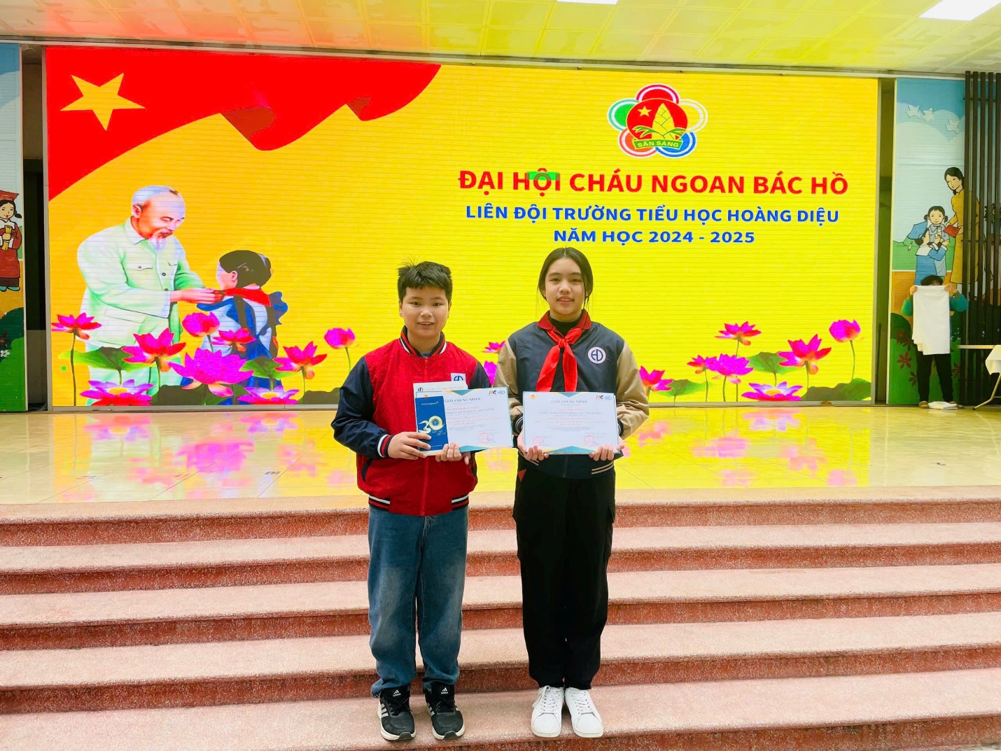 Đặc biệt, với những thành tích nổi bật trong học tập và rèn luyện, bạn Vũ Bảo Linh đã vinh dự được trao tặng danh hiệu "Cháu ngoan Bác Hồ" – danh hiệu cao quý dành cho những đội viên ưu tú, có nhiều đóng góp trong học tập và phong trào Đội.