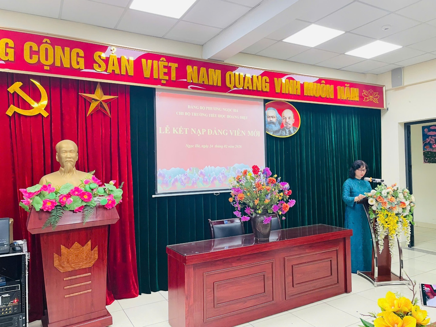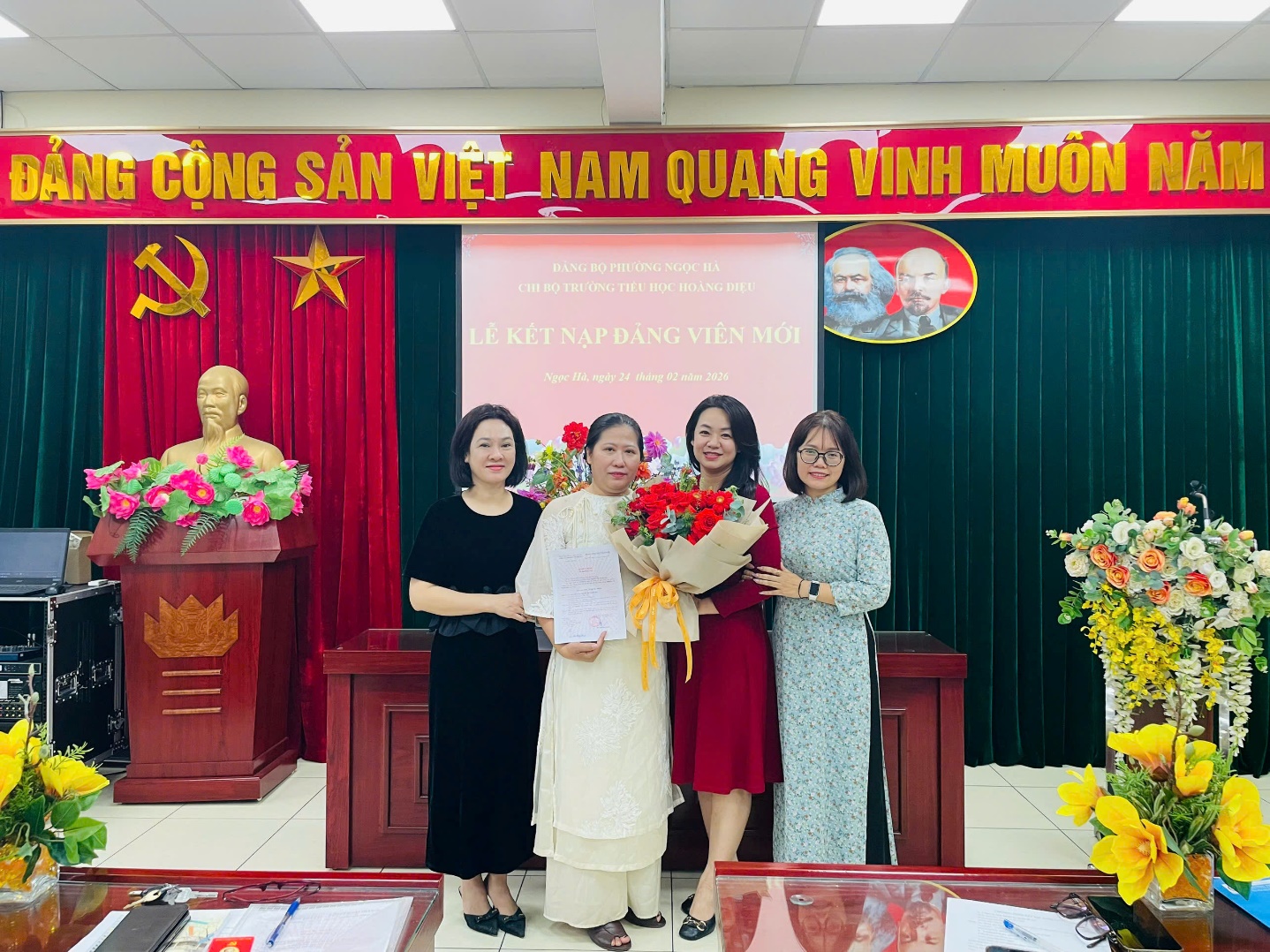Sáng ngày 24/02/2026, trong không khí trang nghiêm và đầy tự hào, Chi bộ trường Tiểu học Hoàng Diệu đã long trọng tổ chức lễ kết nạp Đảng viên cho quần chúng ưu tú Nguyễn Thị Thanh Huệ – giáo viên khối 4. Đây là một dấu mốc quan trọng, ghi nhận quá trình phấn đấu bền bỉ và những đóng góp tích cực của đồng chí Huệ trong công tác giảng dạy cũng như các hoạt động phong trào của nhà trường.
