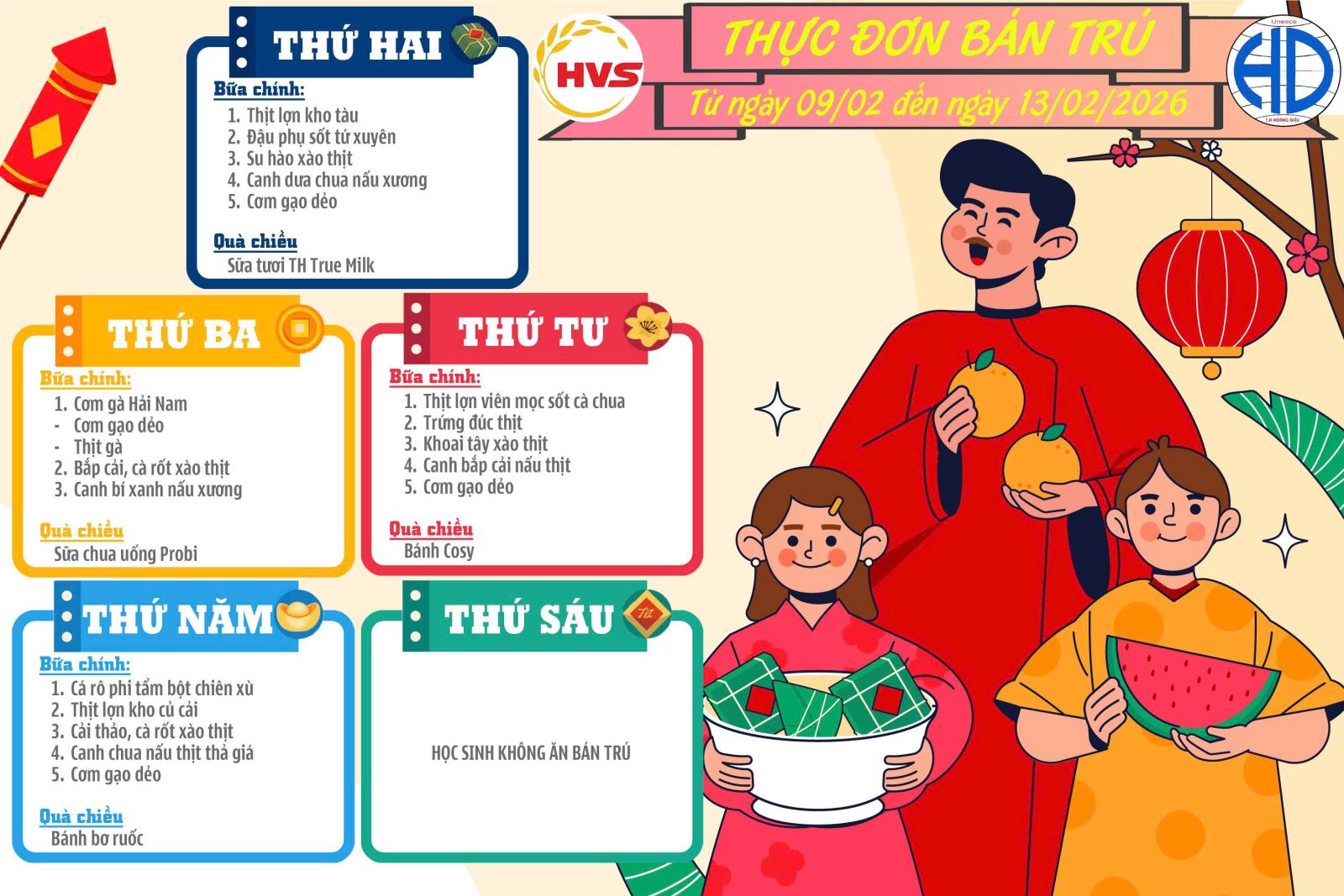 Thực đơn bán trú từ ngày 09 /02 đến 13/02/2026