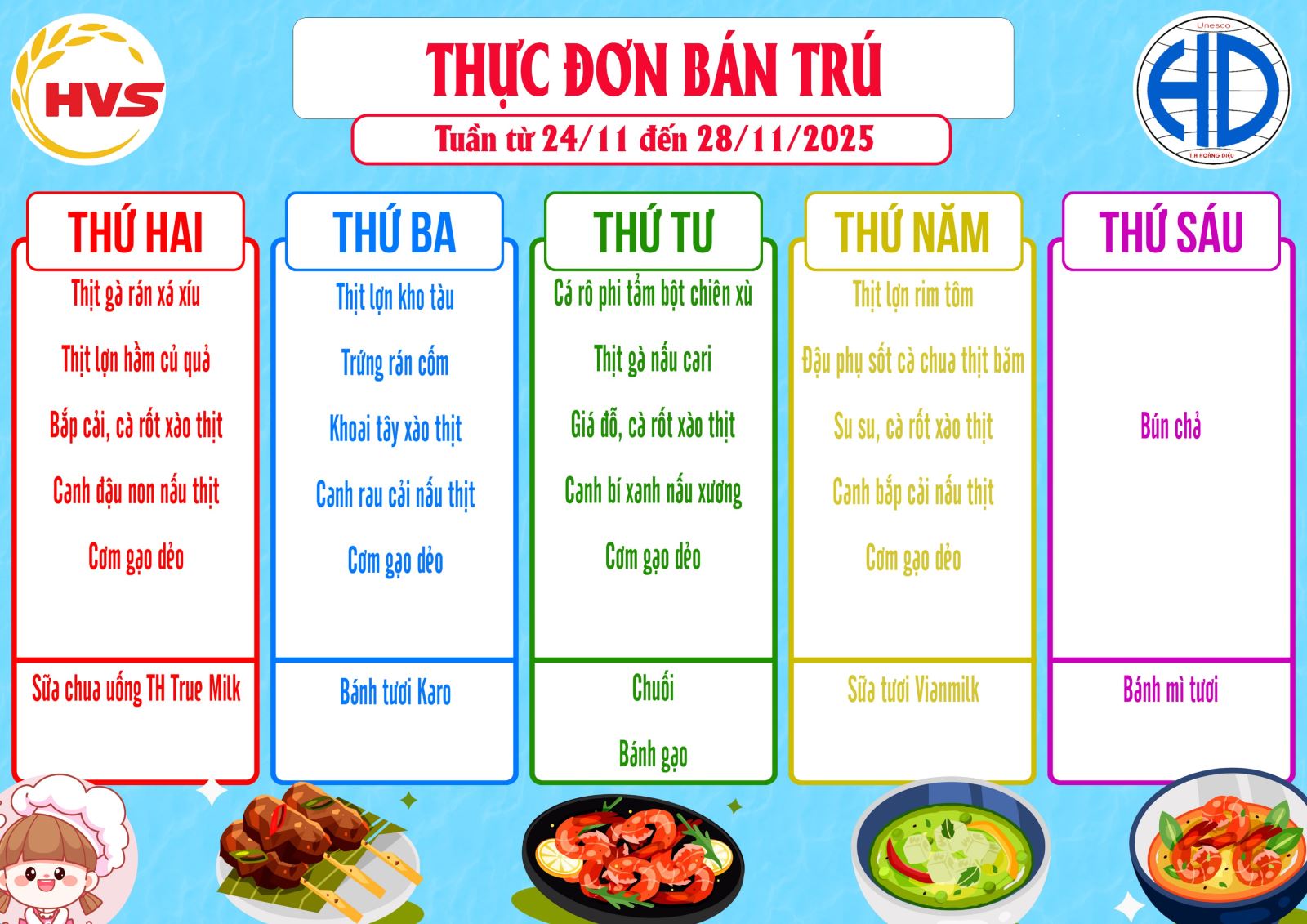 Thực đơn bán trú từ ngày24 /11 đến 28/11/2025