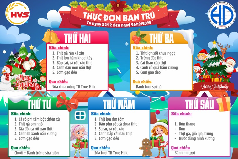 Thực đơn bán trú từ ngày22 /12 đến 26/12/2025