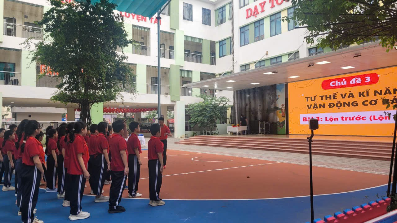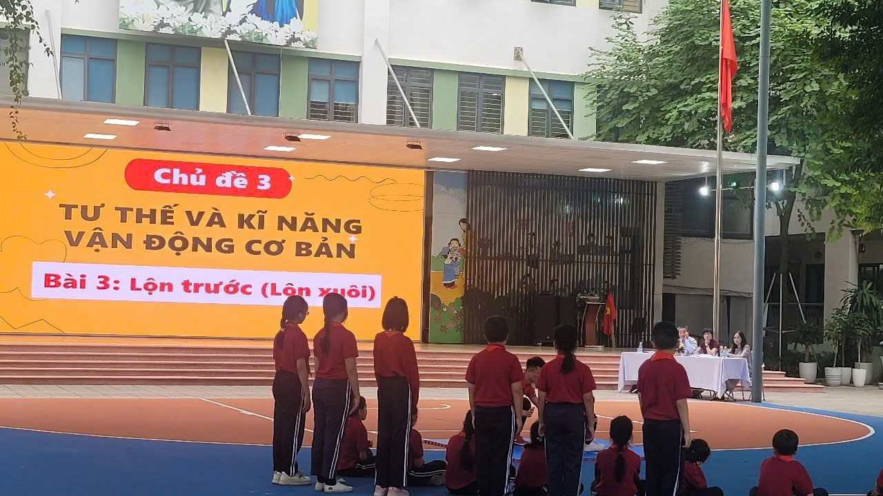 Trong tiết dạy, thầy đã xây dựng bài học rõ ràng, logic, từ khởi động, làm quen động tác đến luyện tập và củng cố. Các động tác lăn xuôi, lăn ngược được thầy hướng dẫn chi tiết, minh họa trực quan, kết hợp sửa sai kịp thời cho từng nhóm học sinh. Không khí lớp học 5A7 luôn sôi nổi, hào hứng; các em tự tin thực hiện động tác, tích cực tham gia luyện tập và hỗ trợ lẫn nhau.