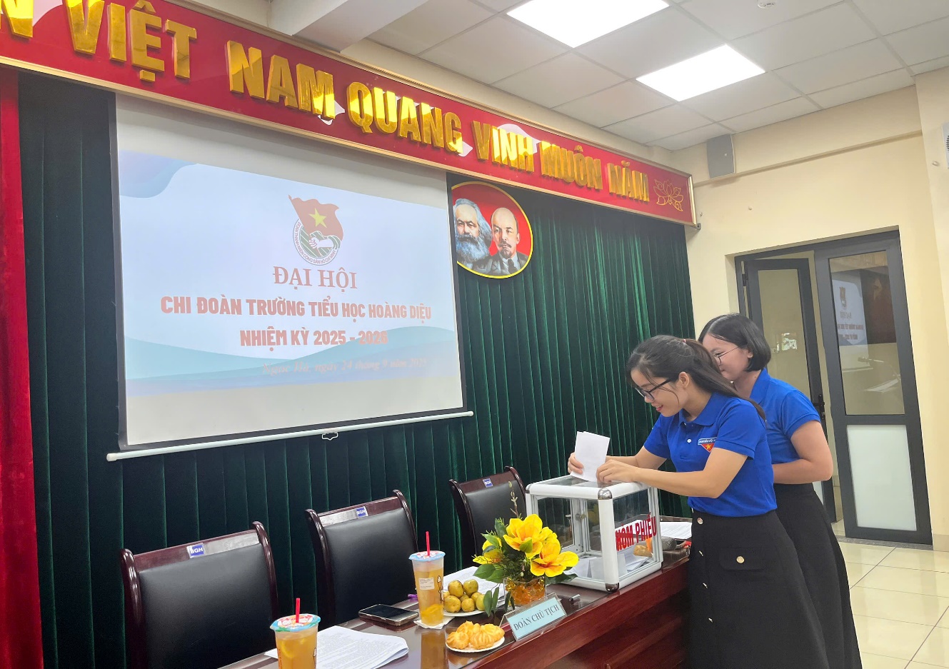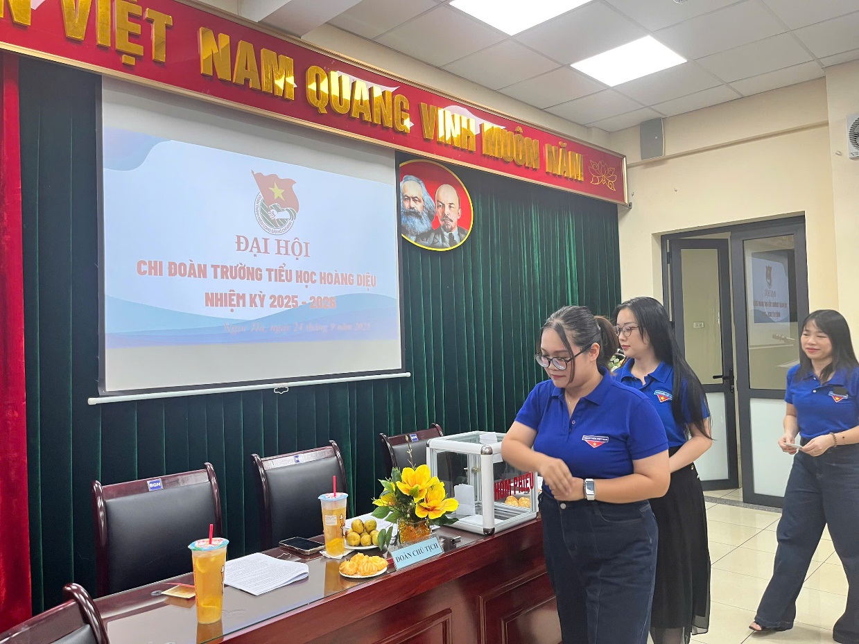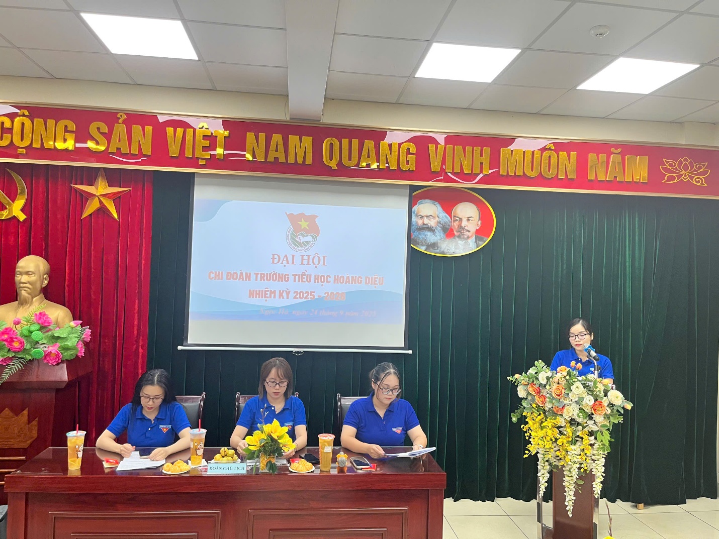 Đại hội Chi đoàn Tiểu học Hoàng Diệu nhiệm kì 2025 – 2026 đã thành công tốt đẹp. Xin chúc cho Ban Chấp hành mới sẽ luôn đoàn kết, thống nhất, sáng tạo, có nhiều mô hình, giải pháp hay, công trình thanh niên tiêu biểu để áp dụng vào Chi đoàn, hoàn thành xuất sắc mọi nhiệm vụ do Đoàn cấp trên, Cấp ủy Chi bộ giao và phấn đấu đạt Chi đoàn Hoàn thành xuất sắc nhiệm vụ trong nhiệm kỳ 2025 - 2026.
