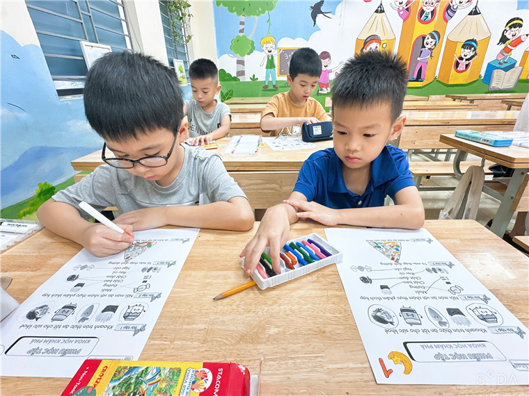 Không cần ống nghiệm hay thí nghiệm “nổ tung trời”, khoa học ở trại hè bắt đầu từ những điều thân thuộc nhất: “Cơ thể con có gì?”, “Ăn gì để khỏe mạnh?”. Các bạn học sinh được tìm hiểu về bộ phận cơ thể người, vai trò của từng giác quan, cách chăm sóc răng miệng, giữ vệ sinh cá nhân, và đặc biệt là học về tháp dinh dưỡng – biết nhóm thức ăn nào nên ăn nhiều, nhóm nào cần hạn chế. Với các trò chơi như ghép hình cơ thể người, xếp đúng nhóm thực phẩm, đoán đồ vật bằng giác quan, các con vừa học vừa chơi, từ đó hình thành thói quen sống lành mạnh – yêu bản thân – biết bảo vệ sức khỏe.